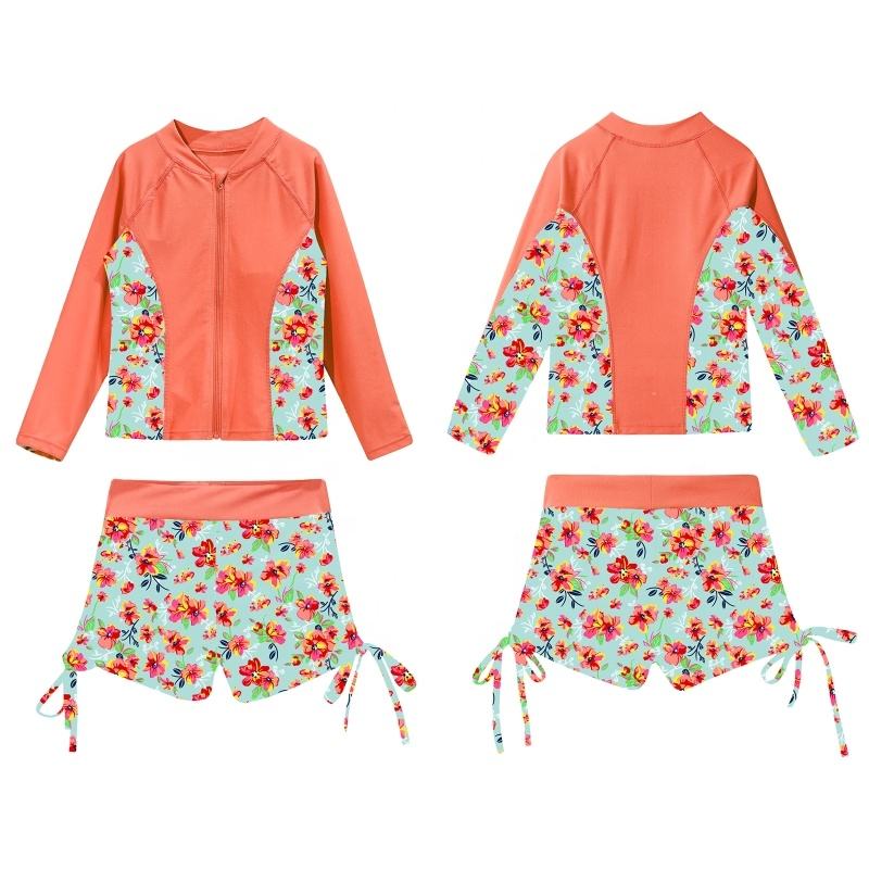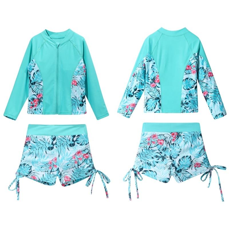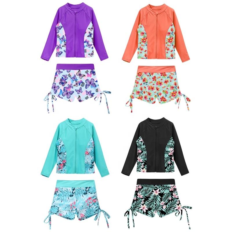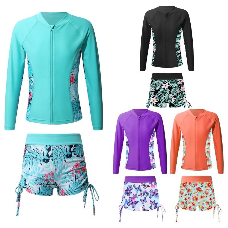 เซ็ตชุดว่ายน้ำพิมพ์ลายสำหรับเด็กผู้หญิง6-16จำนวน2ชิ้นชุดตัวนอกพร้อมกางเกงขาสั้นสำหรับสระว่ายน้ำชายหาดอาบน้ำสวนน้ำ