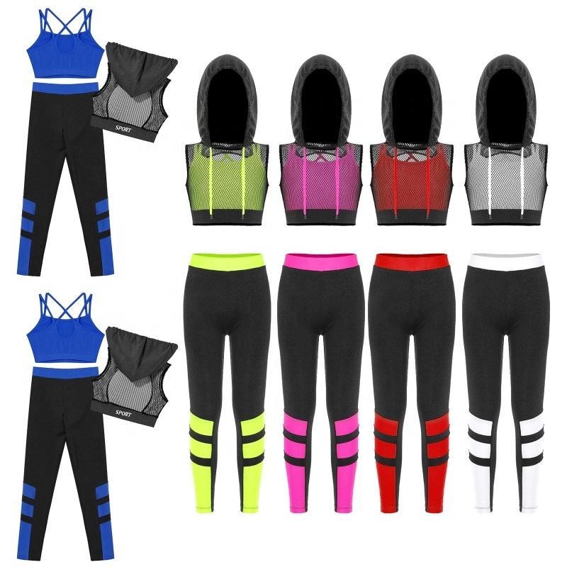 6-16 Children's Dance Costumes Girls Stylish Sport Leggings Three Piece Set Suit Kids Training Dancewear Stage Dance Wear