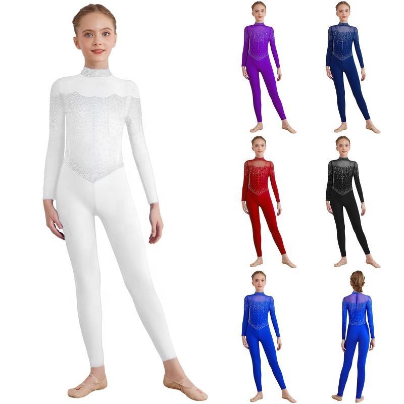 ชุดรัดรูปเต็มตัวสำหรับเด็กผู้หญิงอายุ 6-16 ปี สำหรับฟิกเกอร์สเก็ต การแสดง การแข่งขัน ลาตินแดนซ์ และการเต้นรำสมัยใหม่
