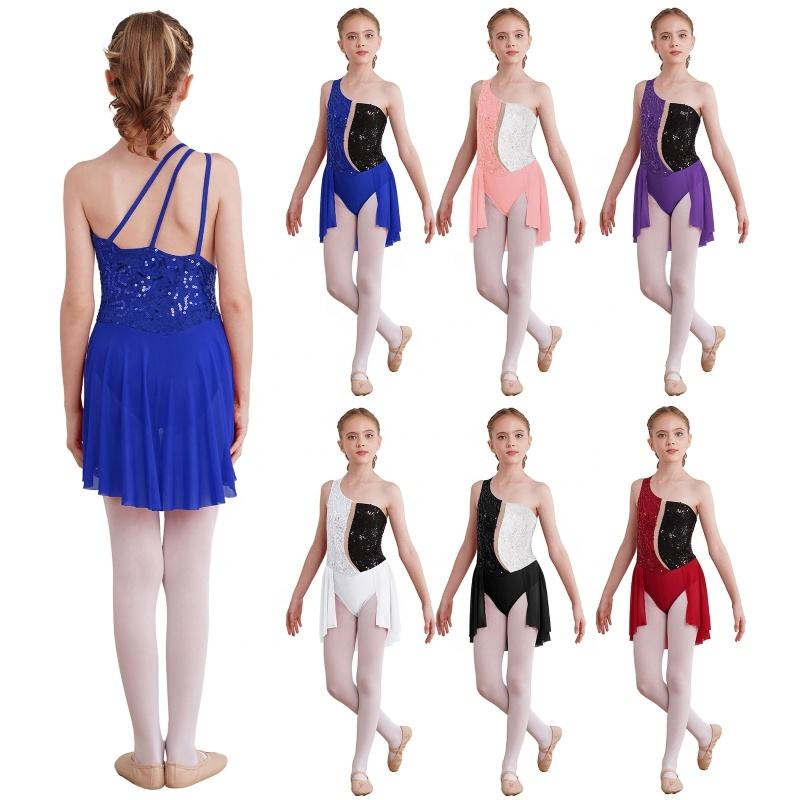 ชุดเต้นรำแขนกุดปักเลื่อมสำหรับเด็กผู้หญิง6-16คนชุดฝึกเต้นชุดเล่นสเก็ตชุดใส่แสดงบนเวทีชุดเต้นรำ