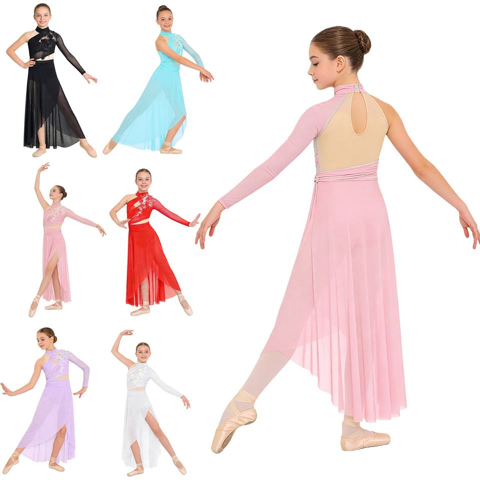 ชุดเต้นรำลีริคอลสีขาวสำหรับเด็กผู้หญิงอายุ 6-16 ปี ชุดแสดงสำหรับการแสดงเต้นรำลีริคอลและการแสดง