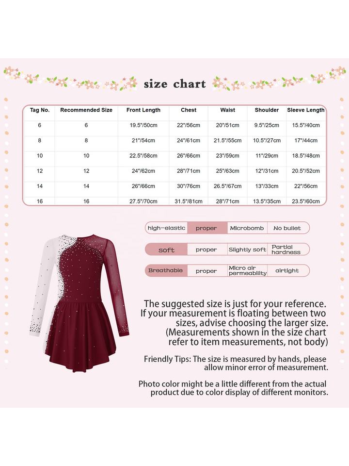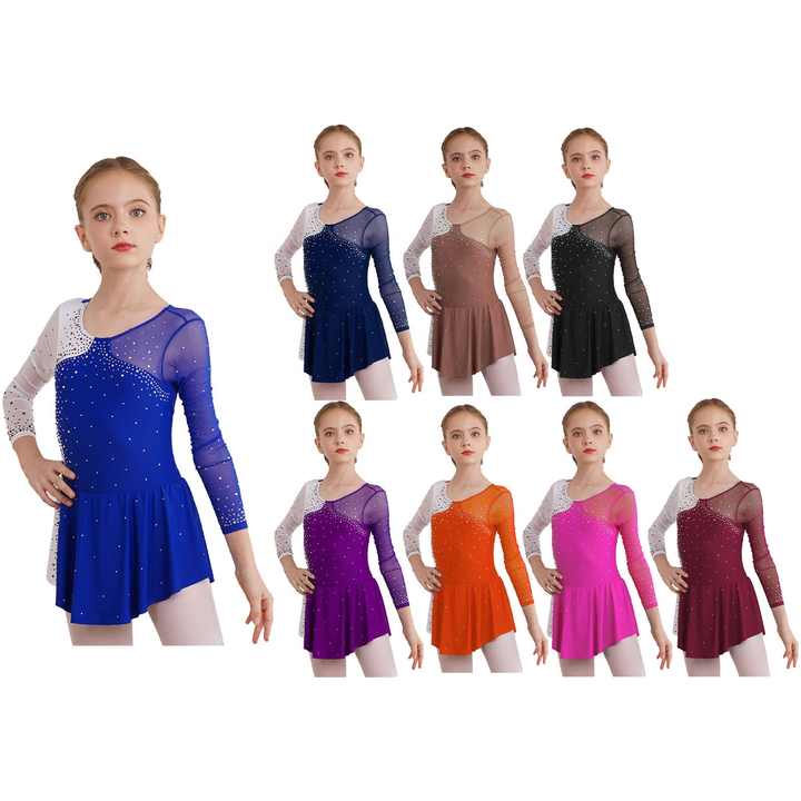 ชุดเต้นรำสำหรับเด็กอายุ 6-16 ปี ชุดแสดงบนเวที ดีไซน์ทันสมัย เสื้อแขนยาว ประดับคริสตัล ชุดเต้นสเก็ตสำหรับเด็กผู้หญิง