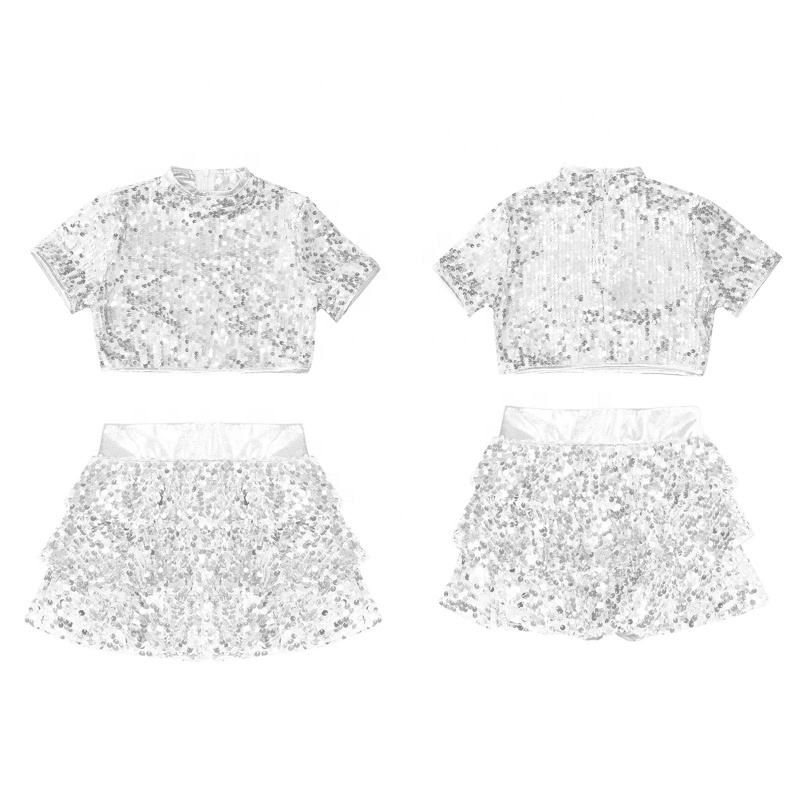ชุดเต้นรำสำหรับเด็กชุดฝึกเต้นสำหรับเด็กชุดเต้นแจ๊สสำหรับเด็กผู้หญิงทันสมัยปักเลื่อม6-16คน