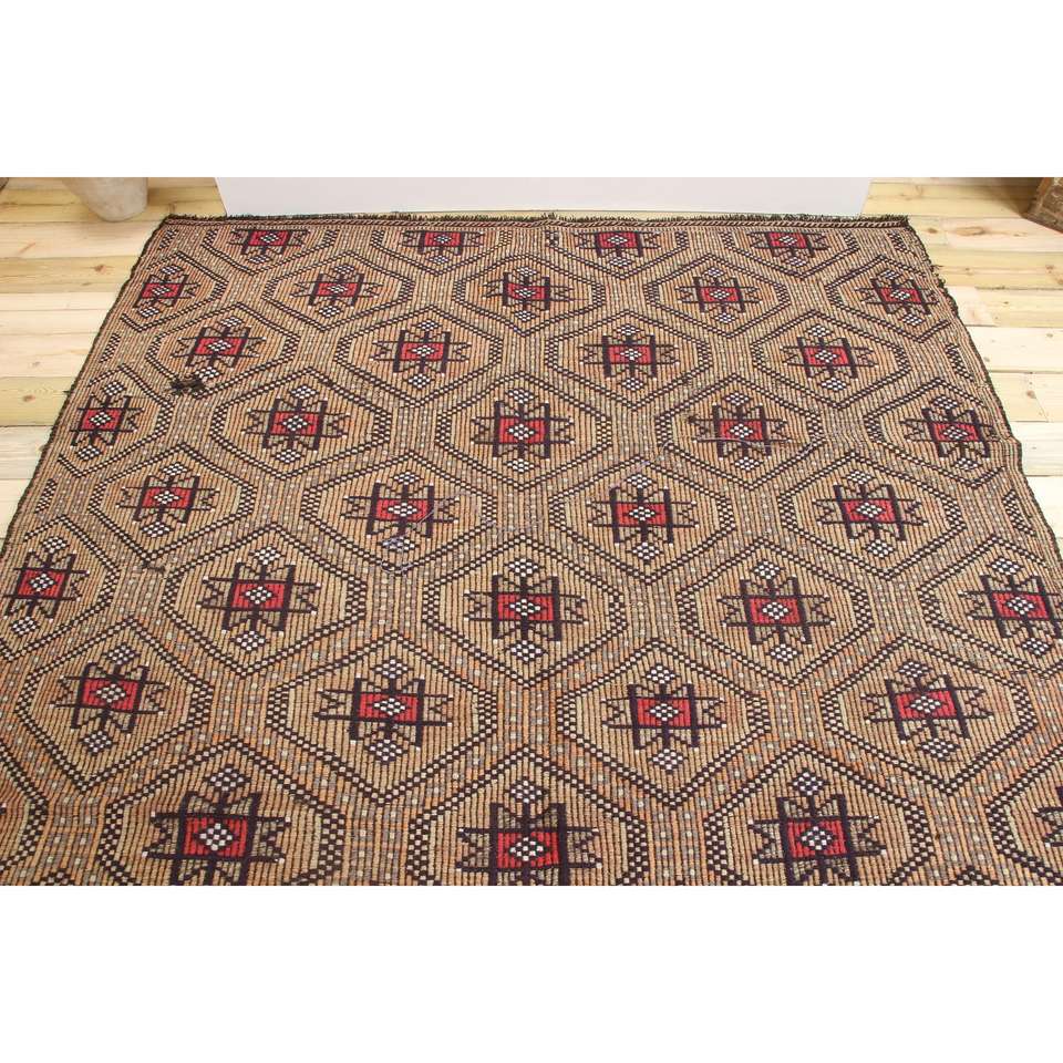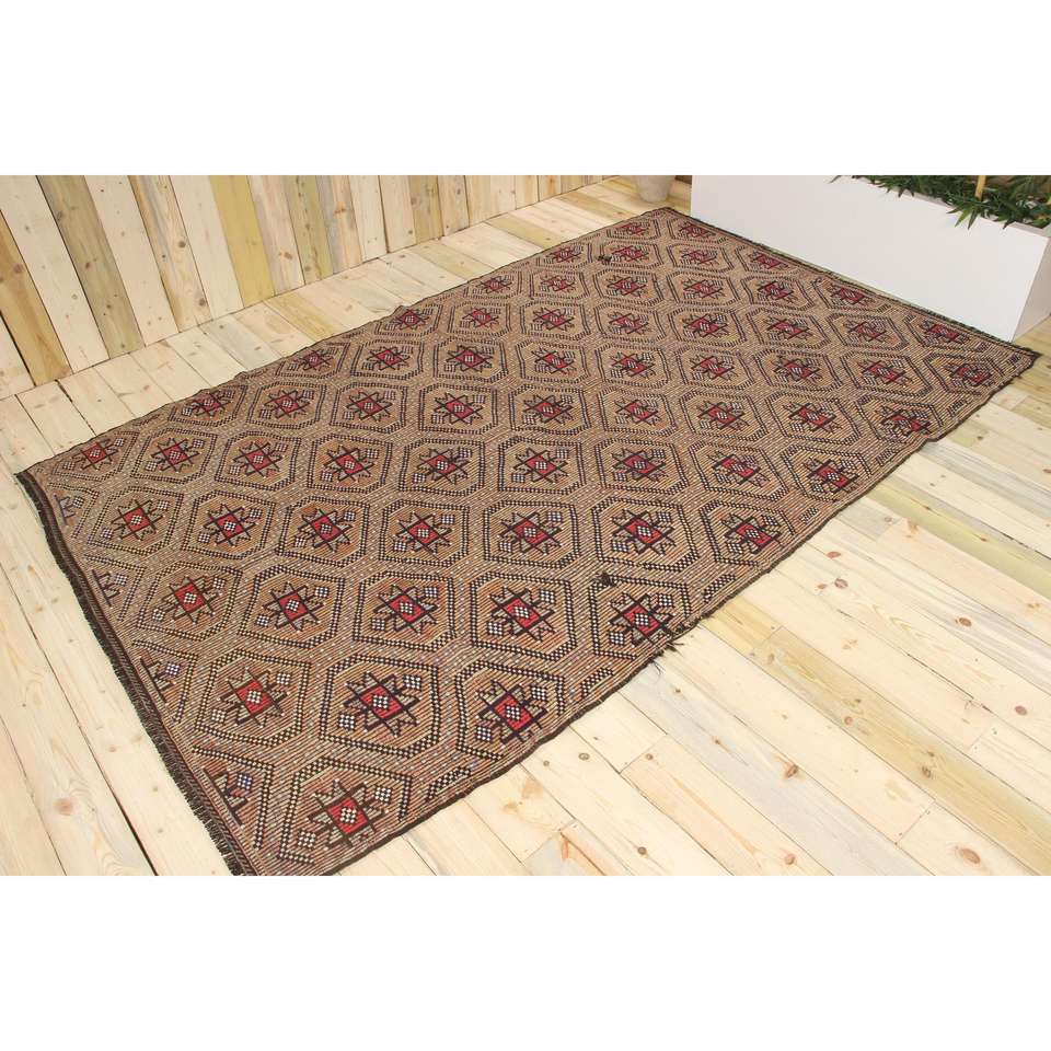 พรมขนาด 6.1x9.7 ฟุต, พรมวินเทจตุรกี, พรมขนสัตว์เปอร์เซียสีน้ำตาล