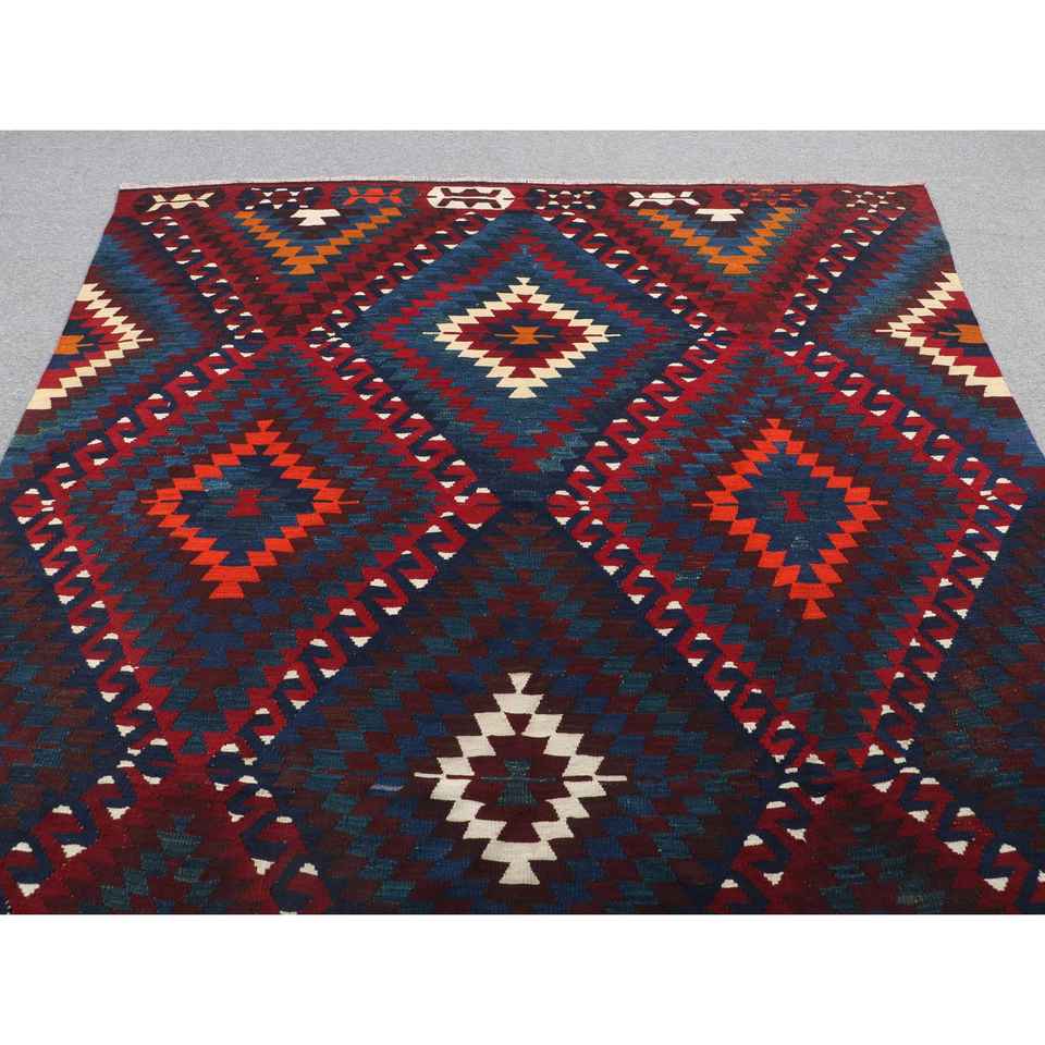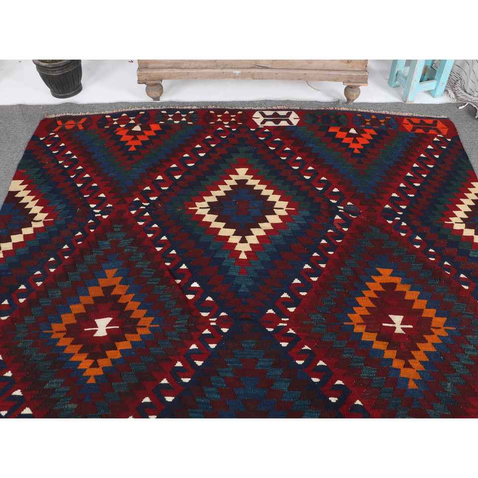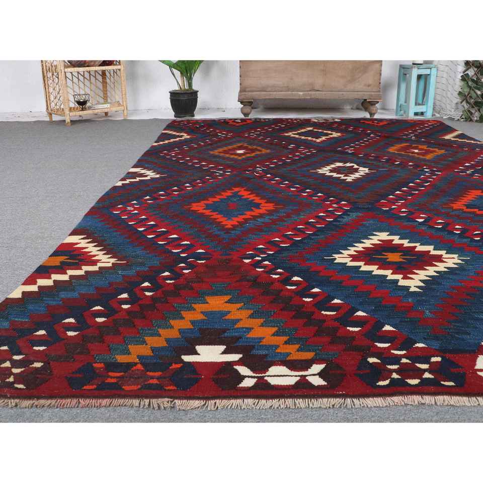 พรมขนาด 6.2x9.8 ฟุต, พรมวินเทจตุรกี, พรมขนสัตว์คิลิมสีแดง