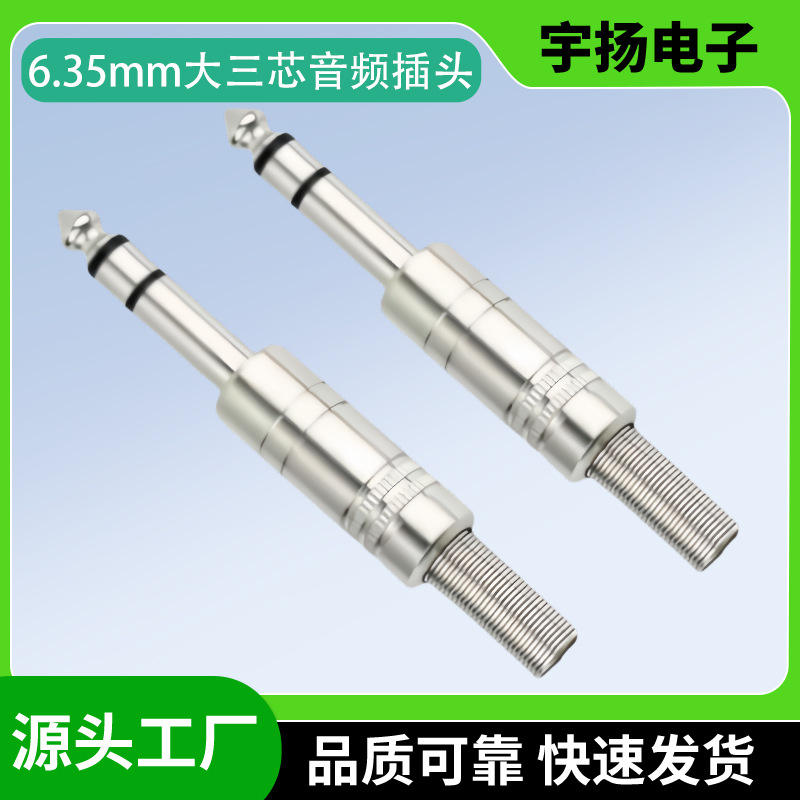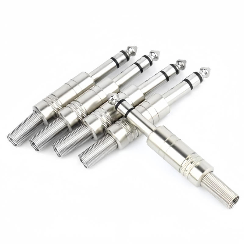ปลั๊กเสียงไมโครโฟนแบบสองช่องขนาด 6.35 มม. ปลั๊กมิกเซอร์สามขาขนาด 6.5 มม. แบบเชื่อมต่อได้ ผลิตจากทองแดงผสมสังกะสี สำหรับไมโครโฟนและเครื่องดนตรี
