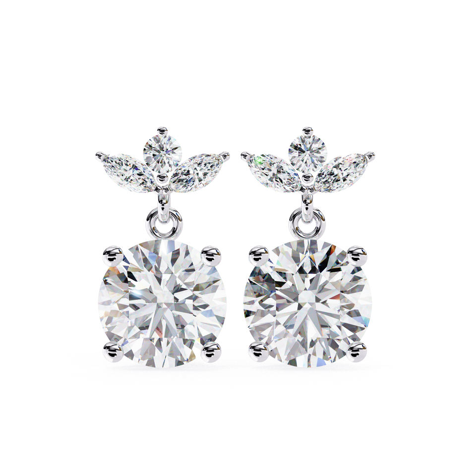 ต่างหูทรงหยดน้ำมอยส์ซาไนต์ทรงกลมขนาด 6.3 มม. ต่างหูมอยส์ซาไนต์ทรงมาควิสแบบคลัสเตอร์ ต่างหูมอยส์ซาไนต์ทรงมาควิสขนาด 3.2×1.6 มม. ต่างหูเงินแท้ 925
