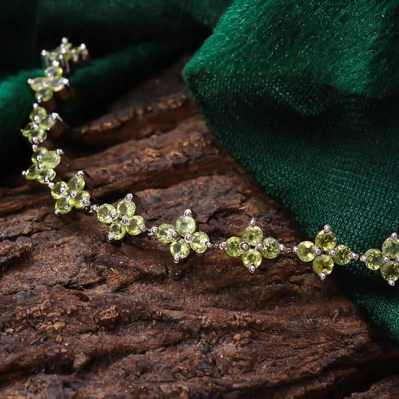 6.5-7.5 "พลอยเพอริดอทธรรมชาติยาว10.4กรัม92.5สเตอร์ลิงเงินกำไลข้อมือสวยงานทำมือสร้อยข้อมือขายส่ง