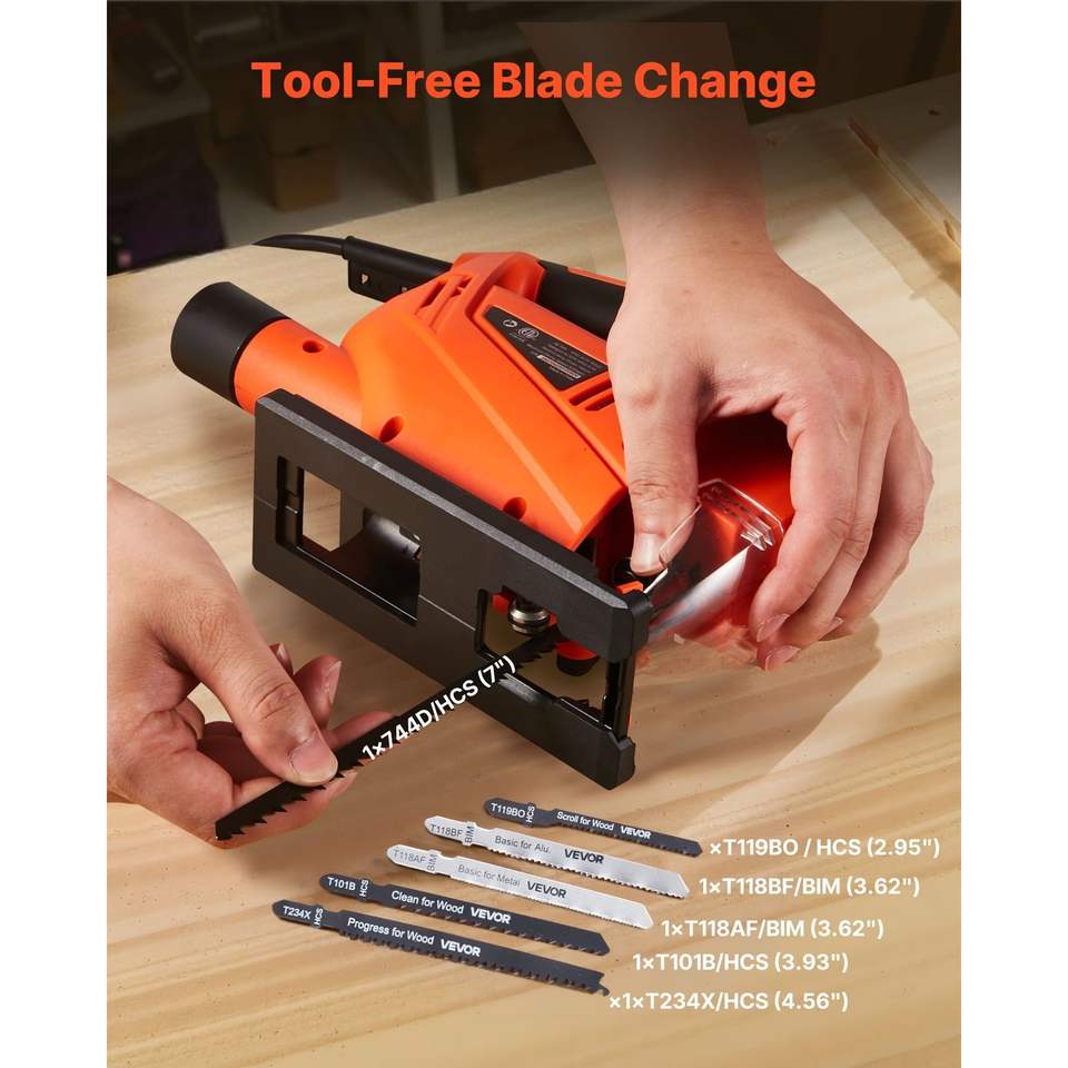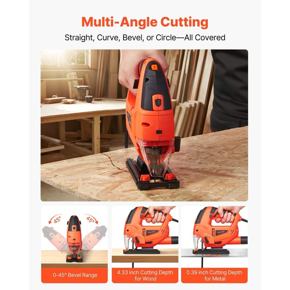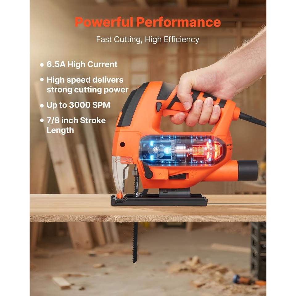 6.5 Amp 3000 SPM Electric Jigsaw LED Light 6 Variable Speed 0- 45 Bevel 4 Orbital Settings for Straight/Circle Cutting Wood