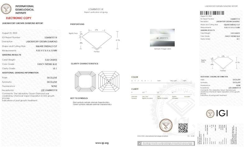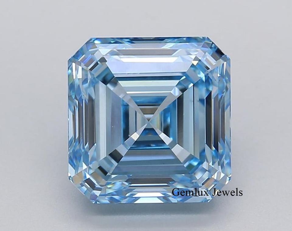 เพชรแล็บสีน้ำเงินเข้มแฟนซีทรงแอสเชอร์ 6.5 กะรัต ได้รับการรับรองจาก IGI ความสะอาดระดับ VS เพชรปลูกในห้องปฏิบัติการสำหรับแหวน