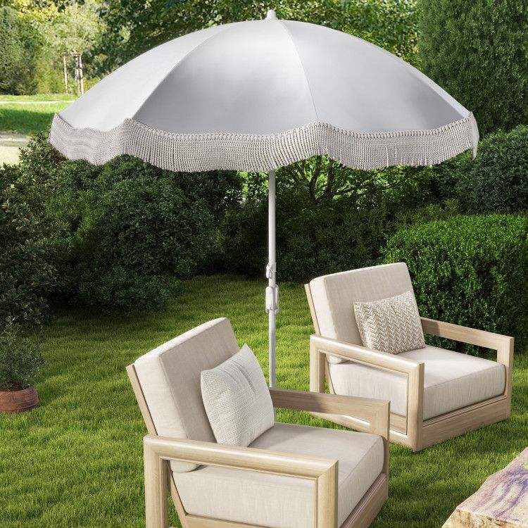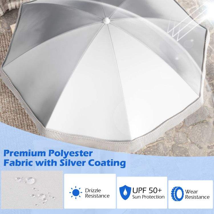 ร่มชายหาดปุ่มเอียงแบบกดยาว6.5ฟุตร่มและฐานกลางแจ้งสำหรับลานบ้าน
