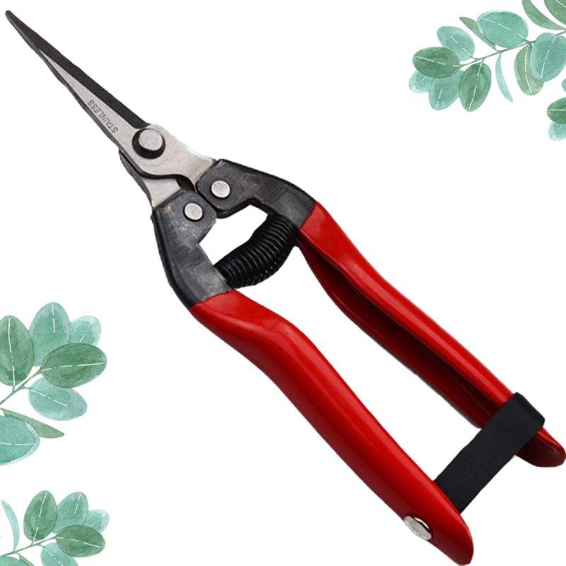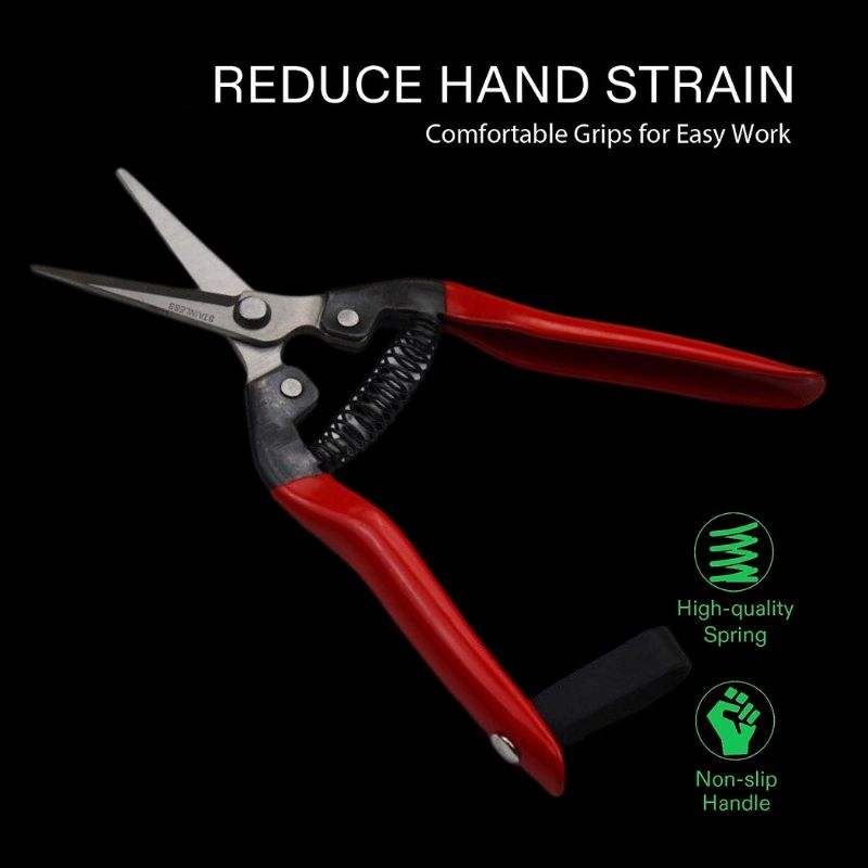 กรรไกรทําสวนขนาด 6.5 นิ้วสีแดงตรงใบมีดสแตนเลสมือตัดแต่งกิ่งเฉือนคมเคล็ดลับก้นแหลมขอบเรียบ OEM
