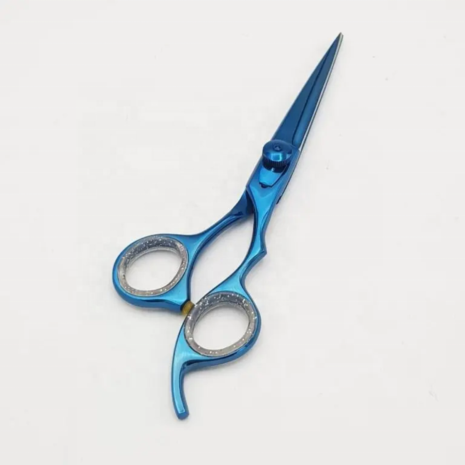 กรรไกรตัดผมสแตนเลส J2ญี่ปุ่นยาว6.5นิ้วกรรไกรตัดผมสีฟ้าเคลือบไทเทเนียมสีฟ้า