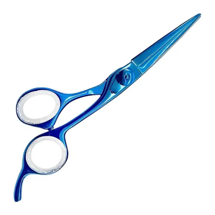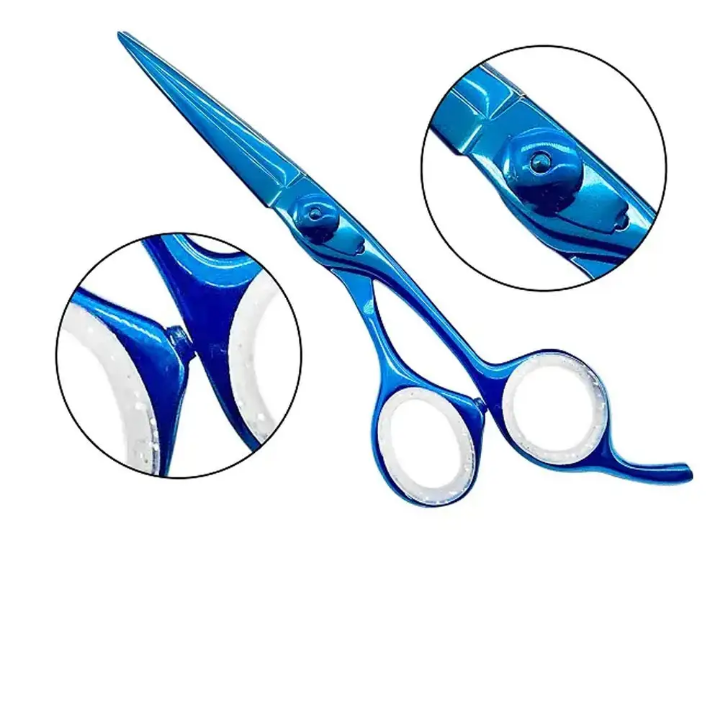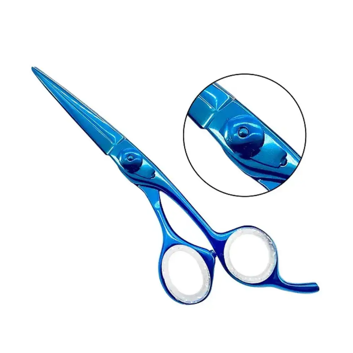 กรรไกรตัดผมสแตนเลส J2ญี่ปุ่นยาว6.5นิ้วกรรไกรตัดผมสีฟ้าเคลือบไทเทเนียมสีฟ้า