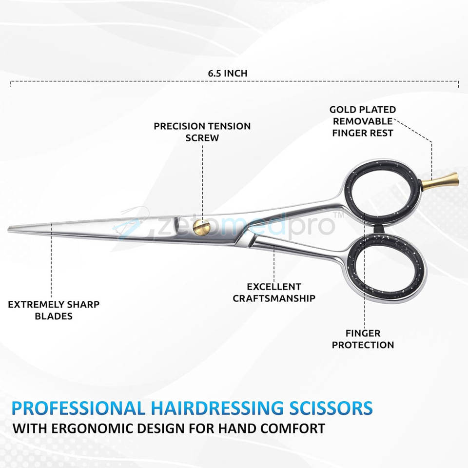 กรรไกรตัดผมขนาด 6.5 นิ้ว ให้การตัดที่เรียบเนียนและควบคุมทรงผมได้ดี กรรไกรตัดผมระดับมืออาชีพสำหรับการตัดผม