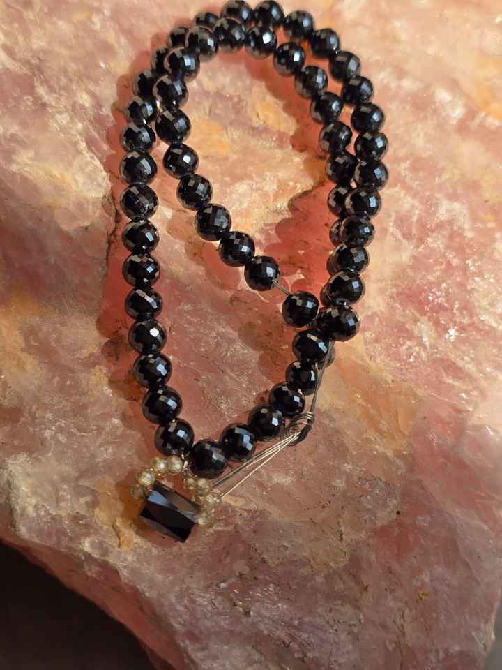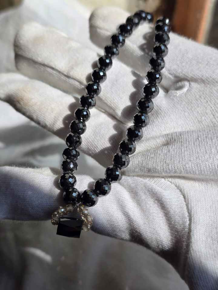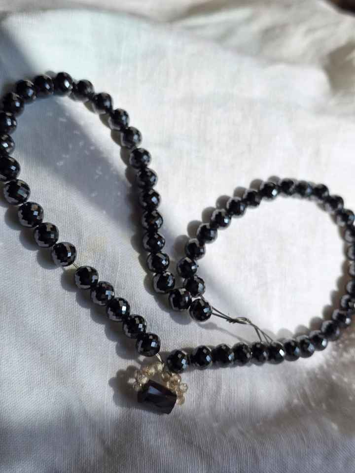ลูกปัดเพชรโมอิสซาไนต์สีดำขนาด 6.5 มม. และสีเหลืองขนาด 3 มม. คุณภาพ AAA แบบเจียระไนเหลี่ยม