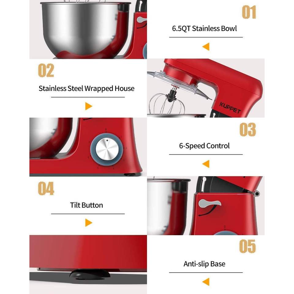 เครื่องผสมอาหารสแตนเลสแบบหัวเอียง6สปีดเครื่องผสมอาหารไฟฟ้าขนาด6.5คิว
