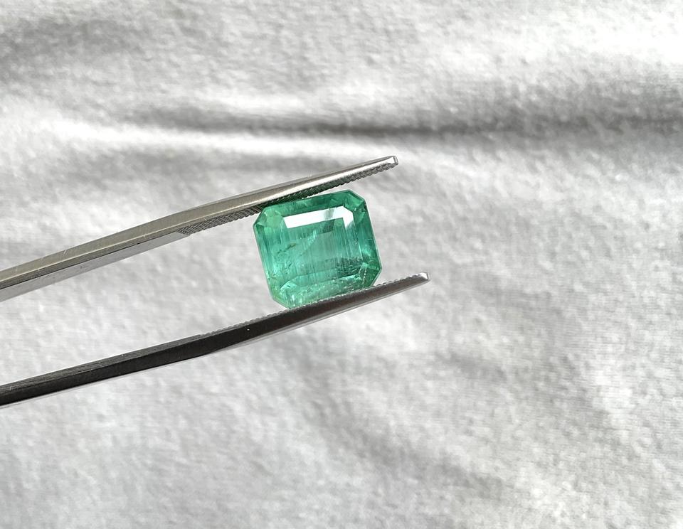 พลอยทัวร์มาลีนสีเขียวอมฟ้า 6.54 กะรัต รูปทรงแปดเหลี่ยมเจียระไนแบบเหลี่ยมเพชรพลอย พร้อมเอฟเฟกต์เปลี่ยนสี สำหรับทำเครื่องประดับชั้นดี