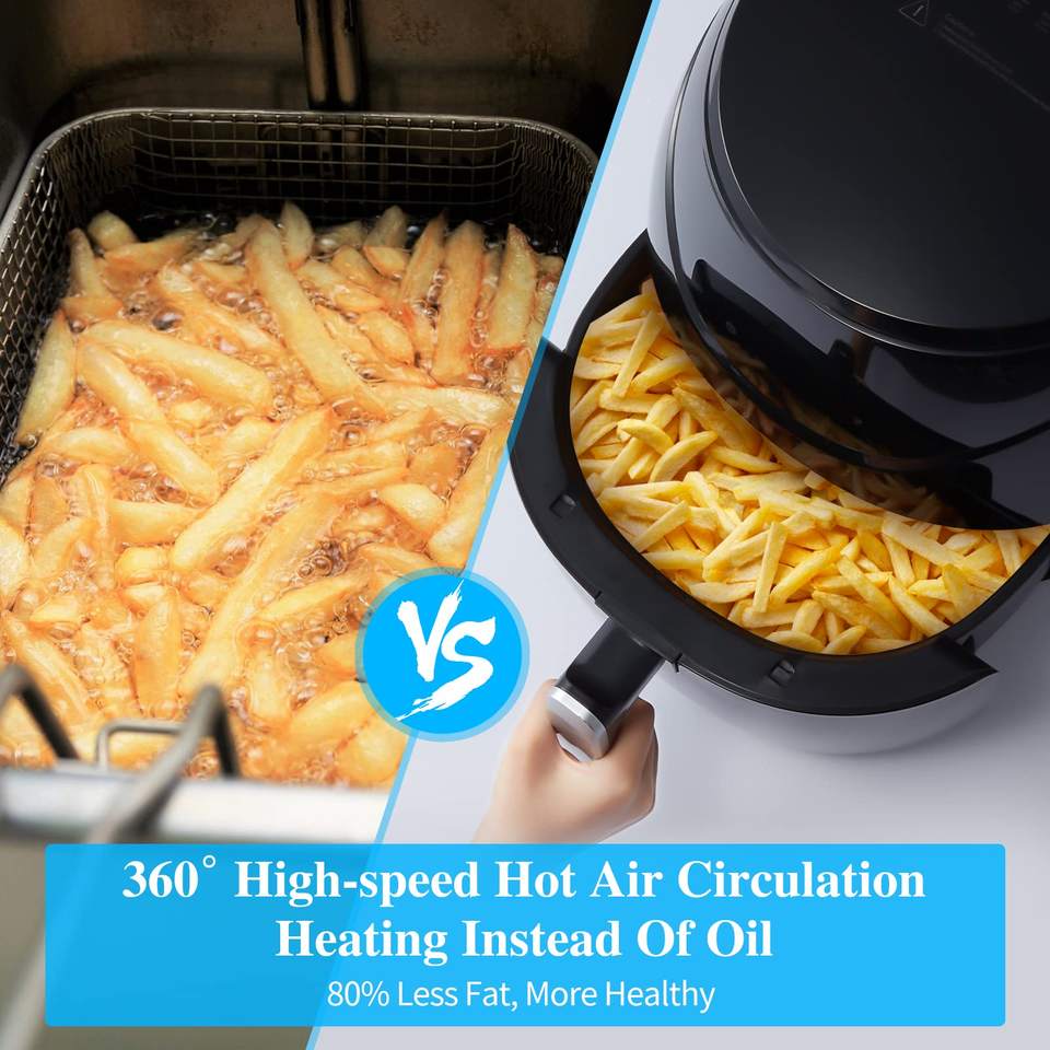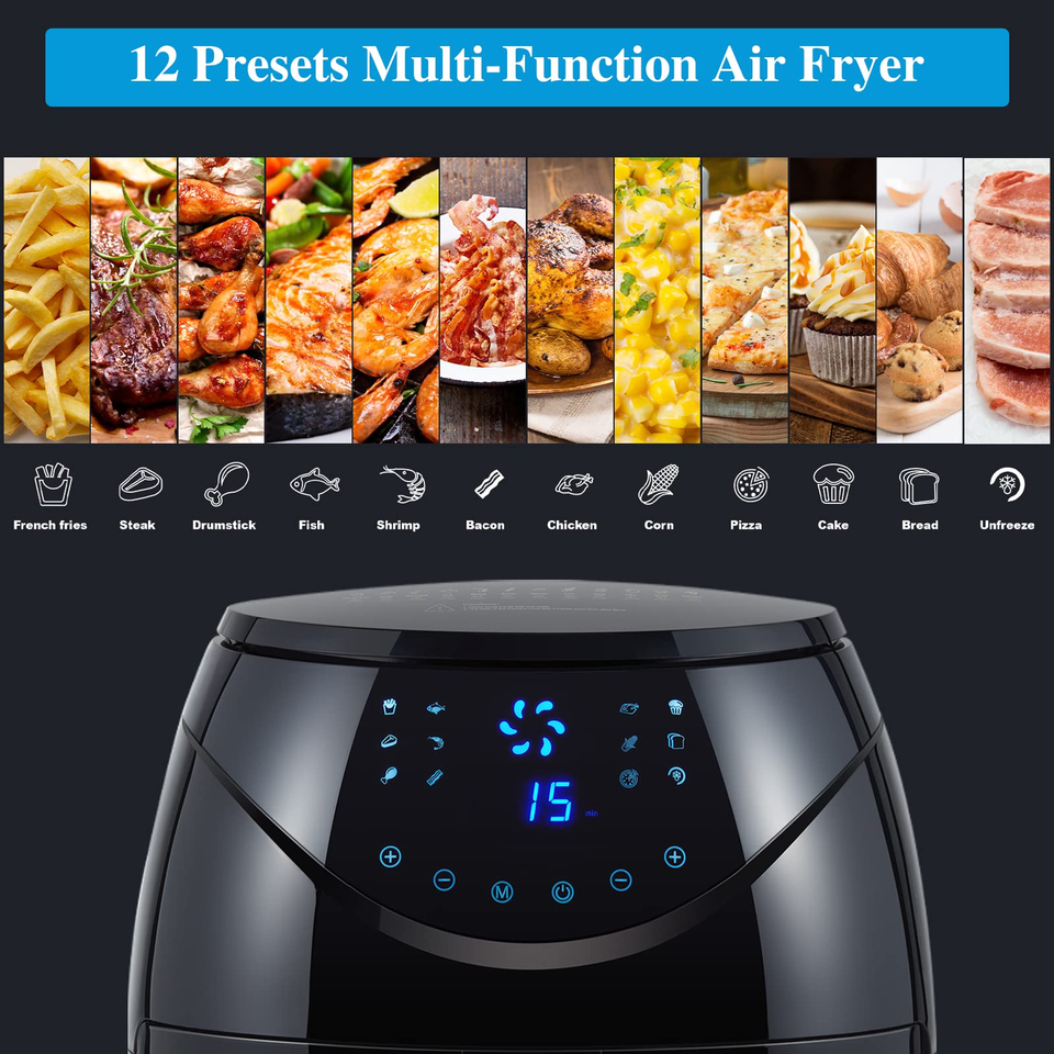 หม้อทอดไร้น้ำมันขนาด 6.5 ลิตร รุ่นโปร, หม้อทอดไร้น้ำมันอเนกประสงค์ขนาดใหญ่ 12-in-1 พร้อมตำราอาหาร, หม้อทอดไร้น้ำมันไฟฟ้าขนาดใหญ่ 7 ควอร์ต สำหรับครอบครัว