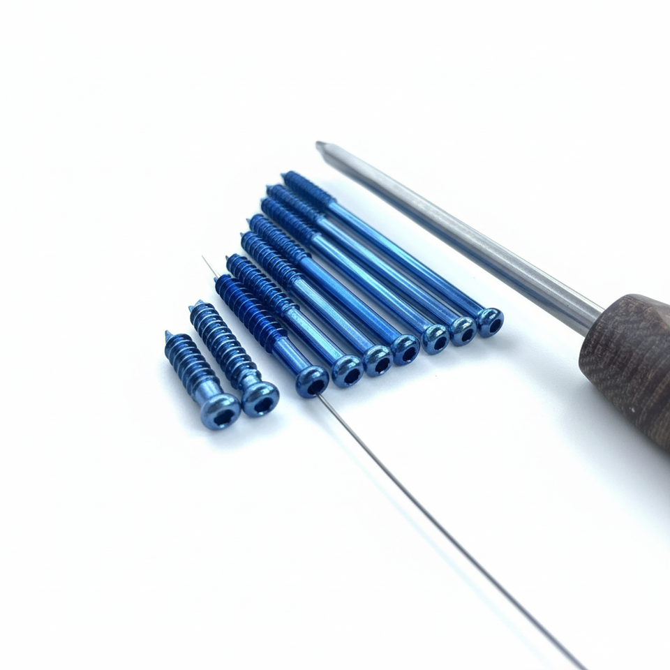 สกรูแคนนูลเลตขนาด 6.5 มม. เกลียว 32 มม. ความยาว 30-110 มม. ไทเทเนียม (86 ชิ้น)