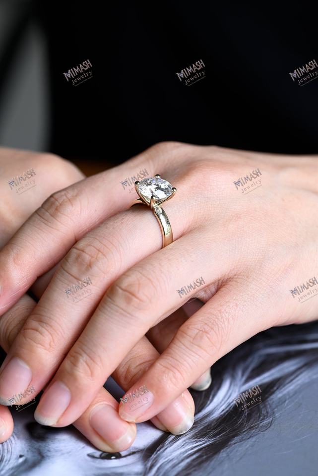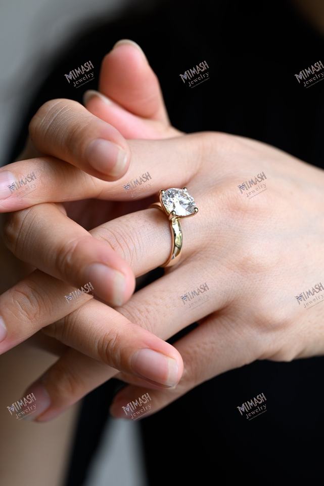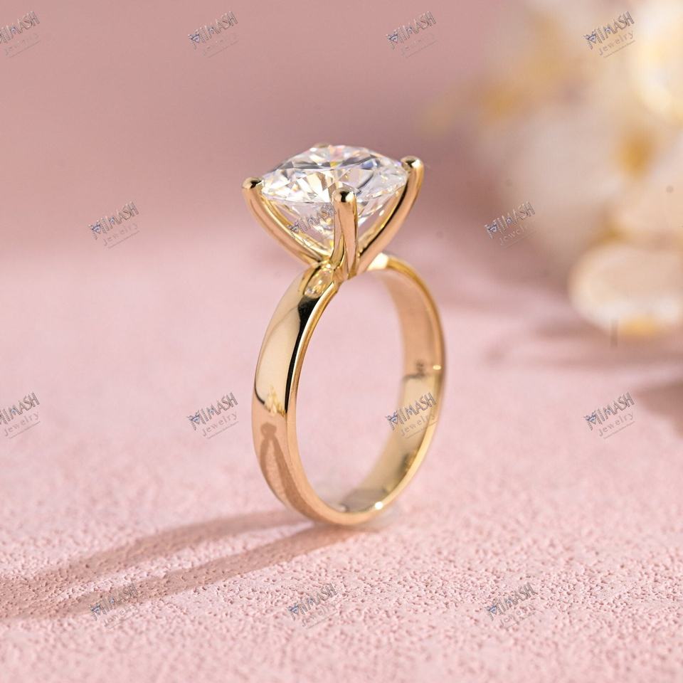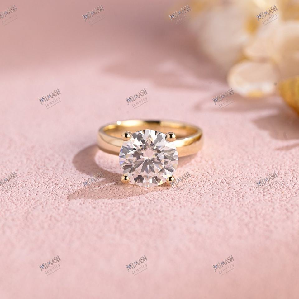 แหวนหมั้นเพชรทรงกลมตัดกับการออกแบบที่หรูหราในแบบคลาสสิก4ง่ามความกว้าง6.5มม.