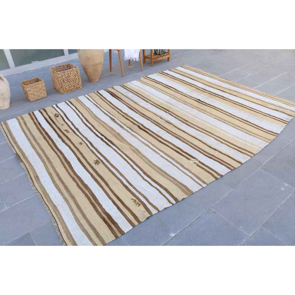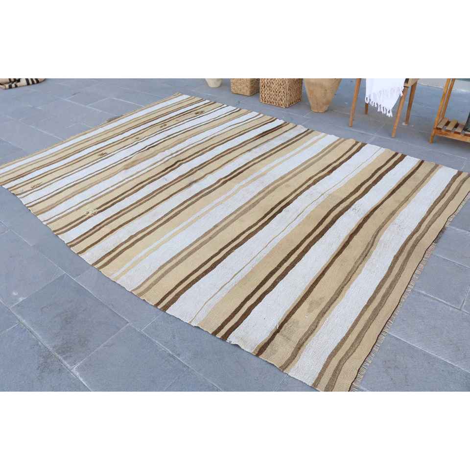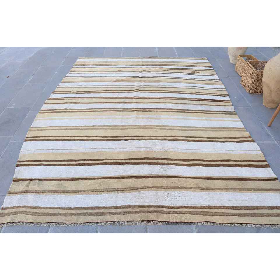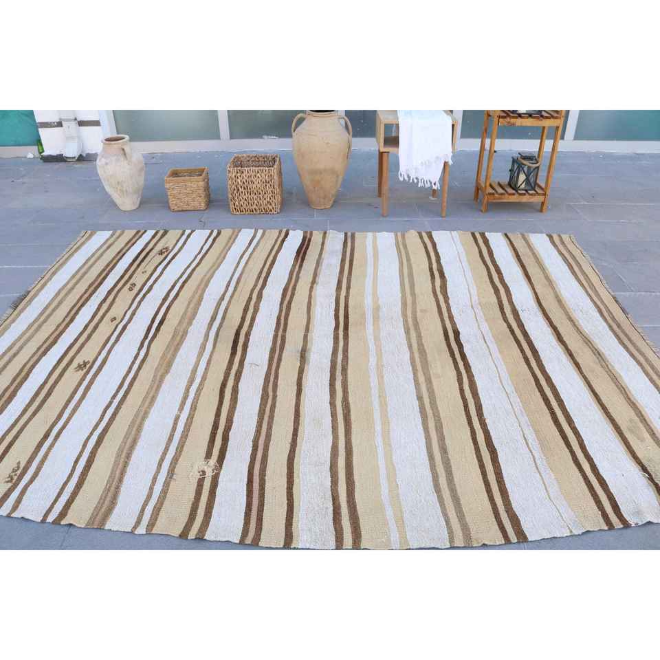 พรมวินเทจขนาด 6.5x9.3 ฟุต สีน้ำตาลลายดอกไม้ พรมขนสัตว์ตุรกี