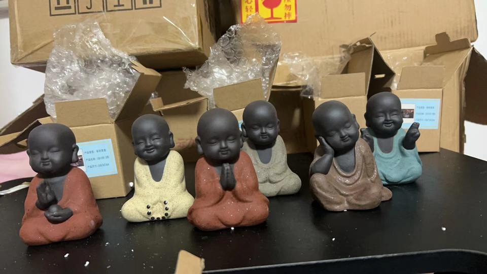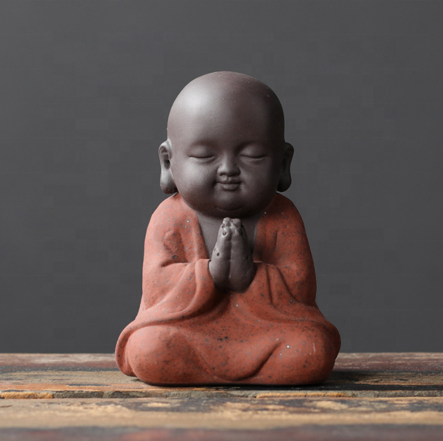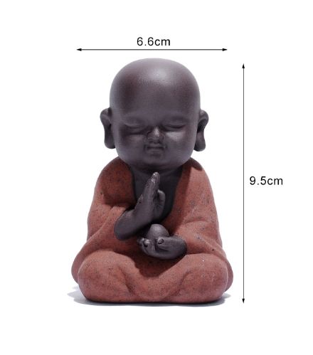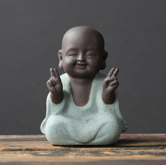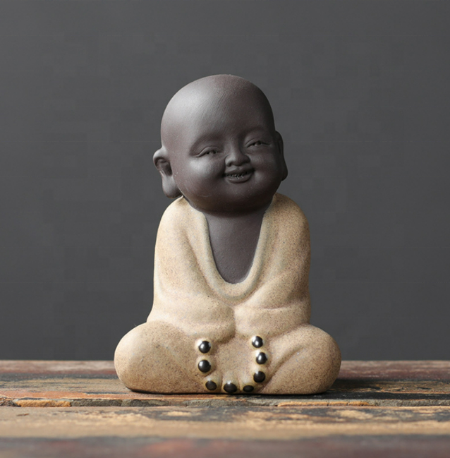 พระนักบวชตัวน้อยยิ้มหัวเราะ ขนาด 6.6*9.5 ซม. รูปปั้นพระพุทธรูปเซรามิก ของตกแต่งบ้าน งานฝีมือสำหรับพิธีชงชา ของเล่นเด็ก พระนักบวชตัวน้อยสำหรับตกแต่งชุดชงชา