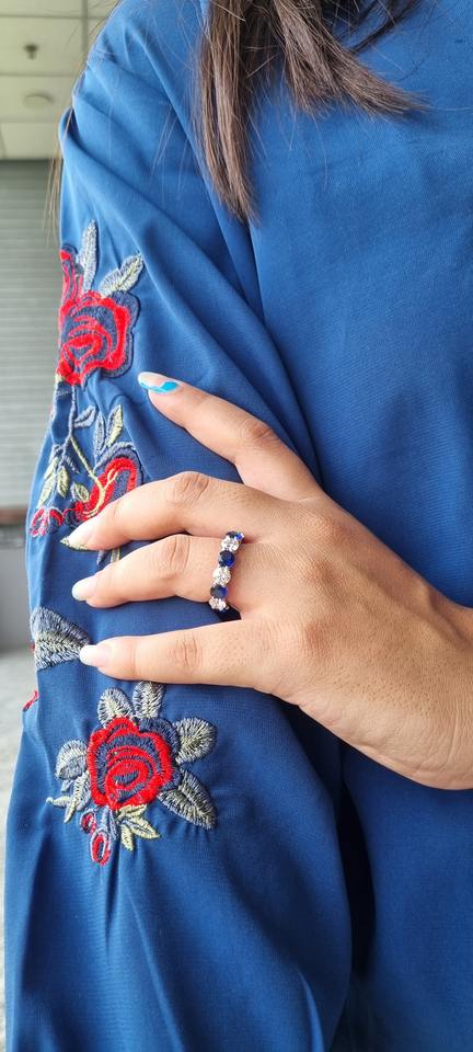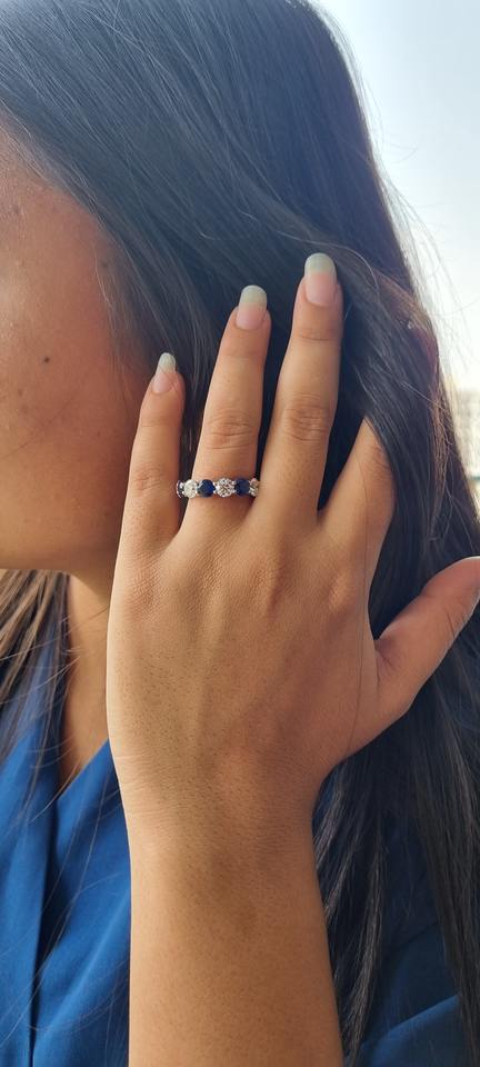 แหวนทองคำขาวประดับเพชรทรงกลม6.72 TDW ประดับด้วยหินแล็บ/แหวนเปล่งประกายหัวใจสี EF-VS