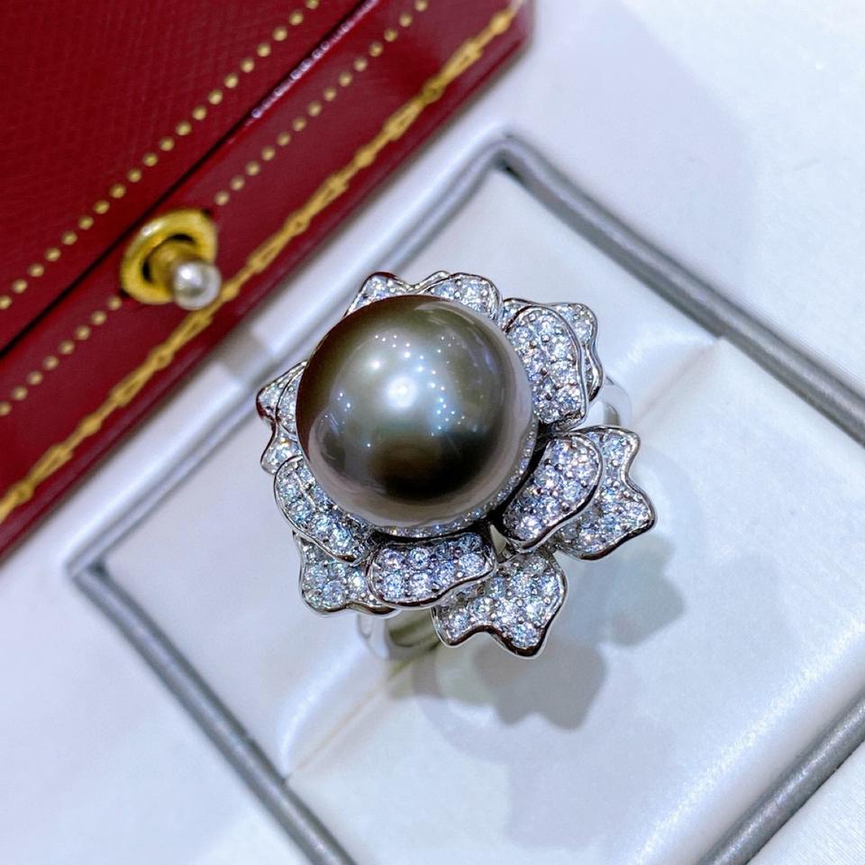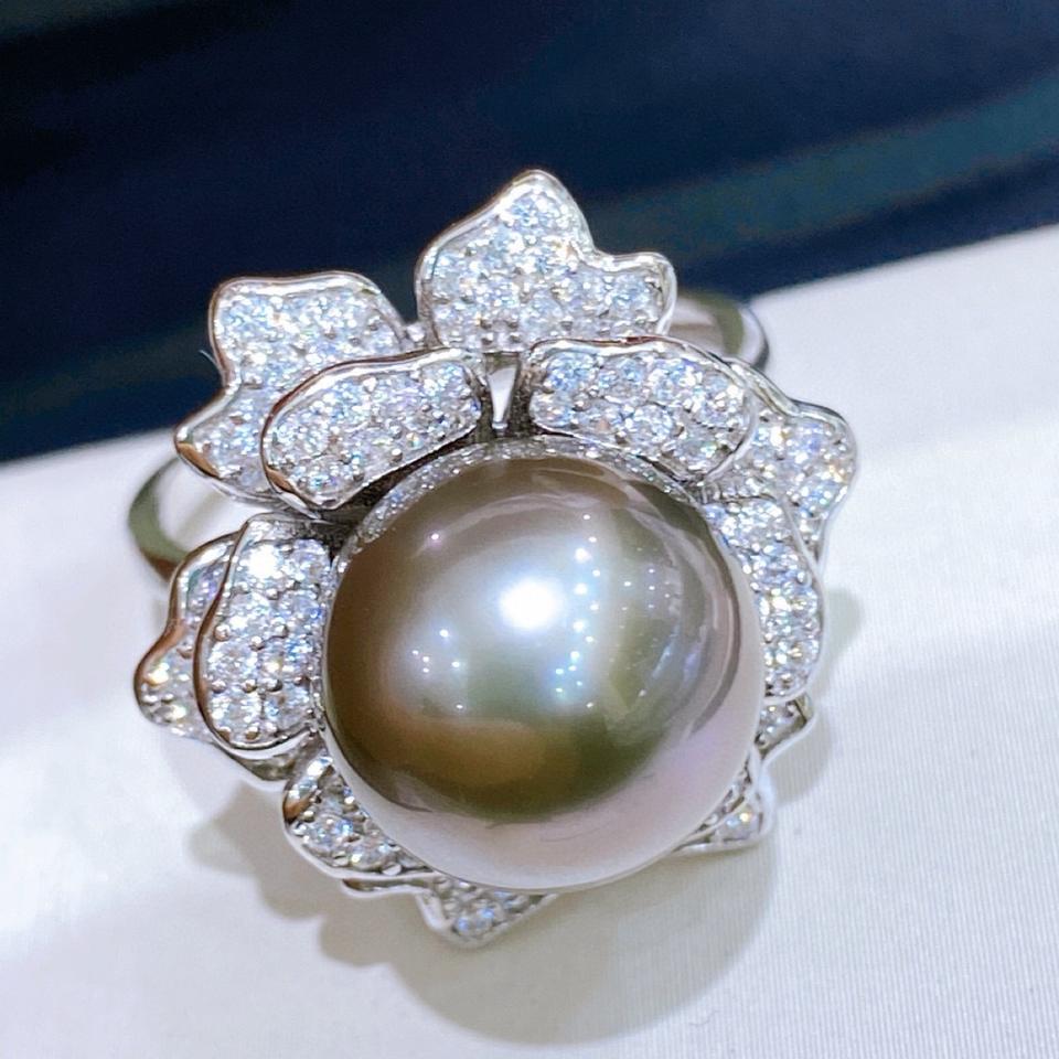 สร้อยคอผ้าลินินแท้ 6-7 มม. แทบไร้ตำหนิ พร้อมวัสดุชุบทองคำเทา 18K แหวนมุกปรับขนาดได้ 60 ซม.