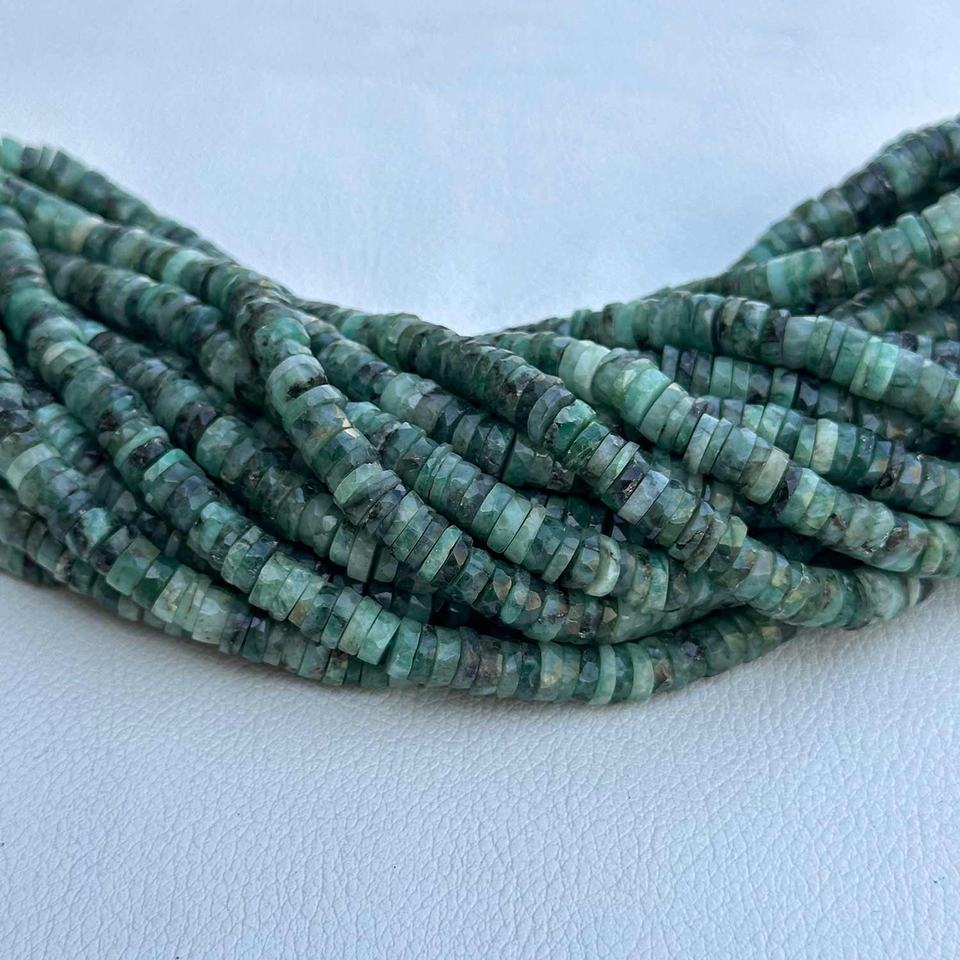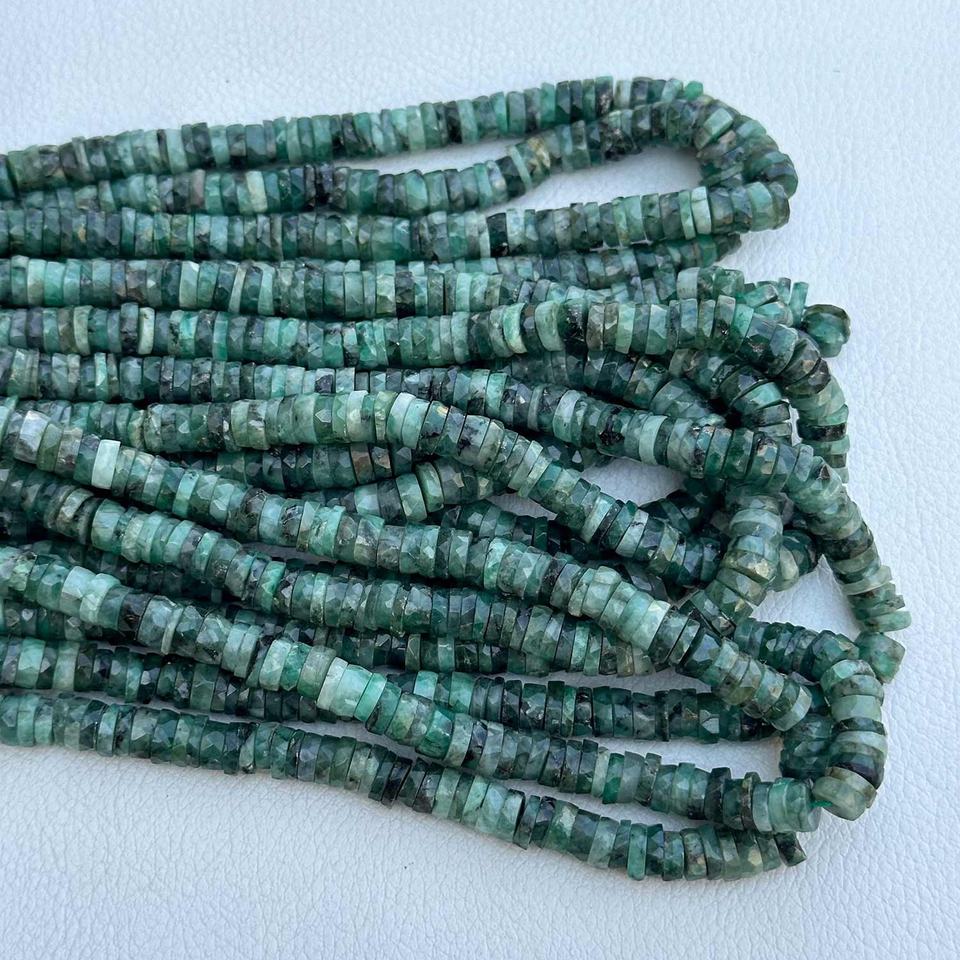 Heishi ยางเหลี่ยมเพชรพลอยมรกตธรรมชาติ6-7มม. สร้อยคอลูกปัดหินหลวมเครื่องประดับแฮนด์เมดขายดี