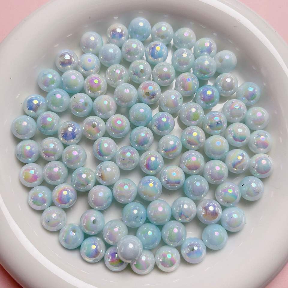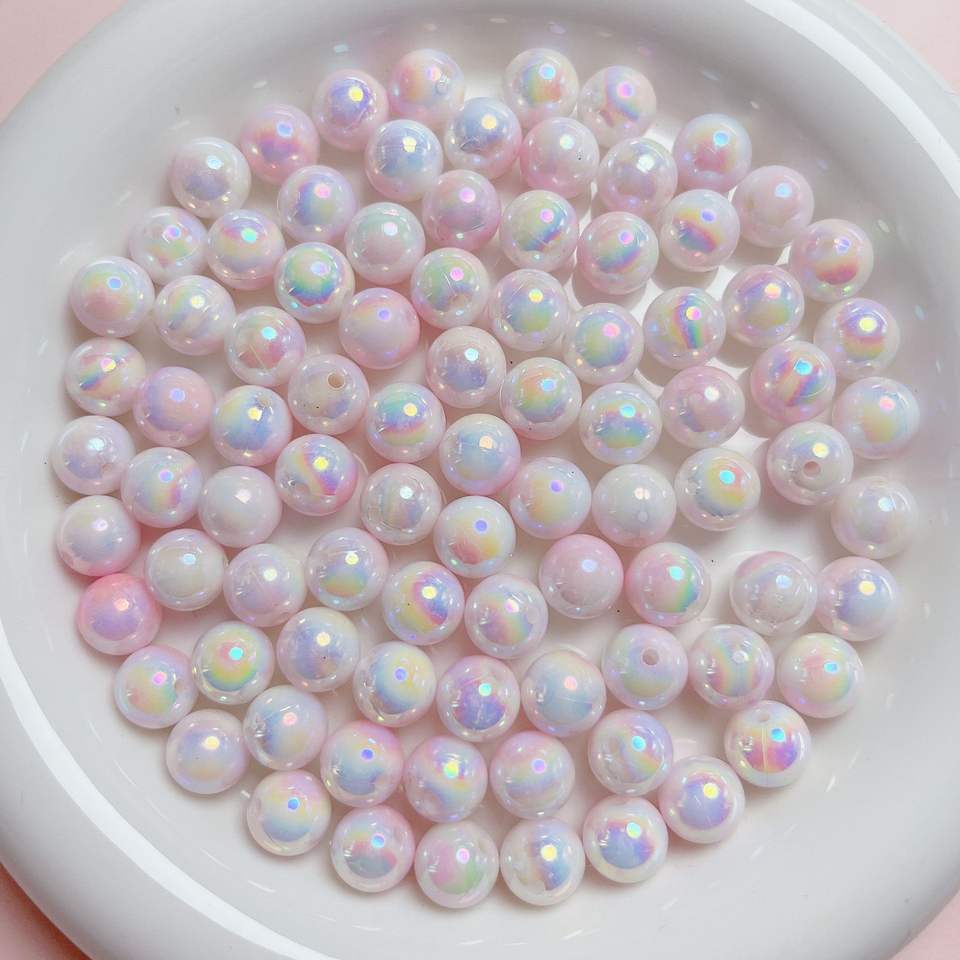ลูกปัดอะคริลิคทรงกลมสีพาสเทลเหลือบรุ้ง AB ขนาด 6/8/10/12 มม. พร้อมรูสำหรับทำเครื่องประดับ DIY