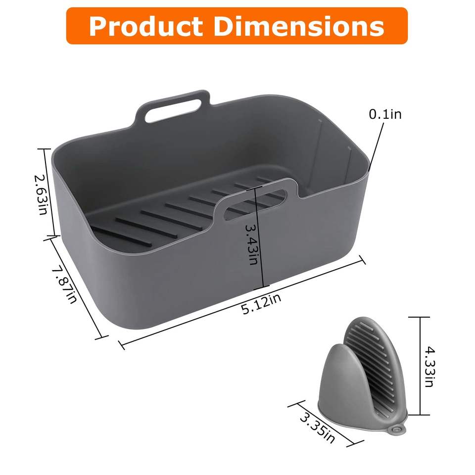 หม้อซิลิโคนสำรองขนาด 6-8 ควอร์ต สำหรับหม้อทอดไร้น้ำมันแบบใช้ซ้ำได้ รูปทรงสี่เหลี่ยมผืนผ้า พร้อมแผ่นรองอบ และตะกร้า 2 ใบ ถุงมือกันความร้อน 1 คู่