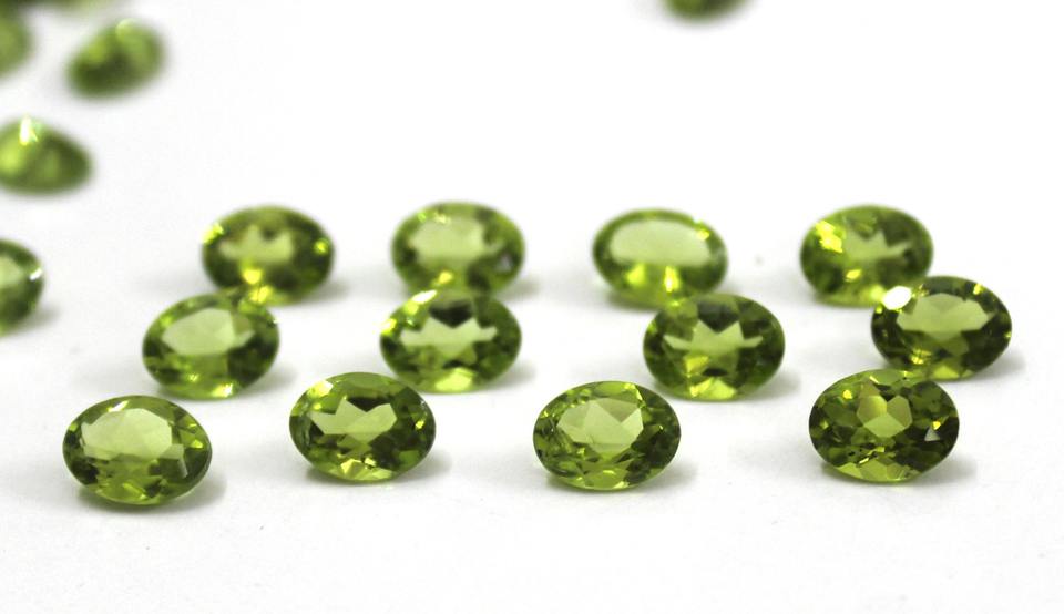 พลอยเพอริดอทสีเขียว1.35Ct 6*8มม. อัญมณีเจียระไนแบบวงรีที่ยอดเยี่ยมสำหรับเป็นเครื่องประดับ