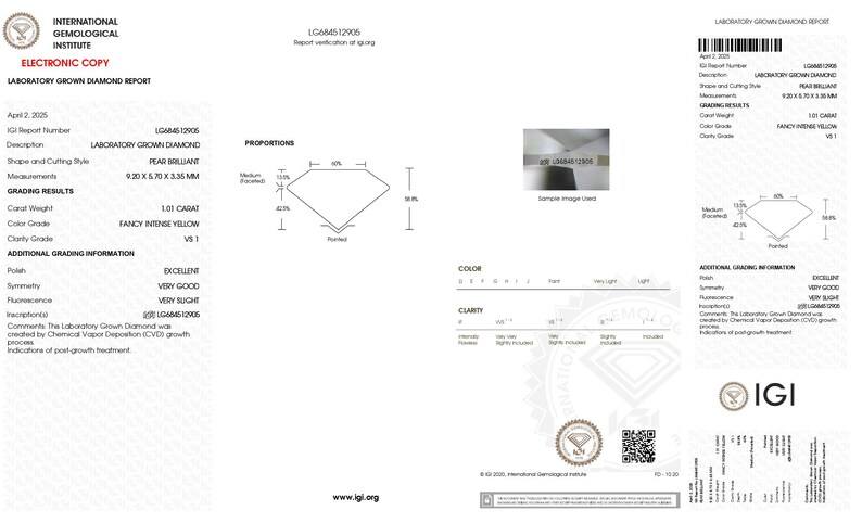 เพชรทรงหยดน้ำสีเหลืองเข้มแฟนซี 6 กะรัต ได้รับการรับรองจาก IGI ความสะอาดระดับ VS เพชรเพาะเลี้ยงสำหรับทำเครื่องประดับ