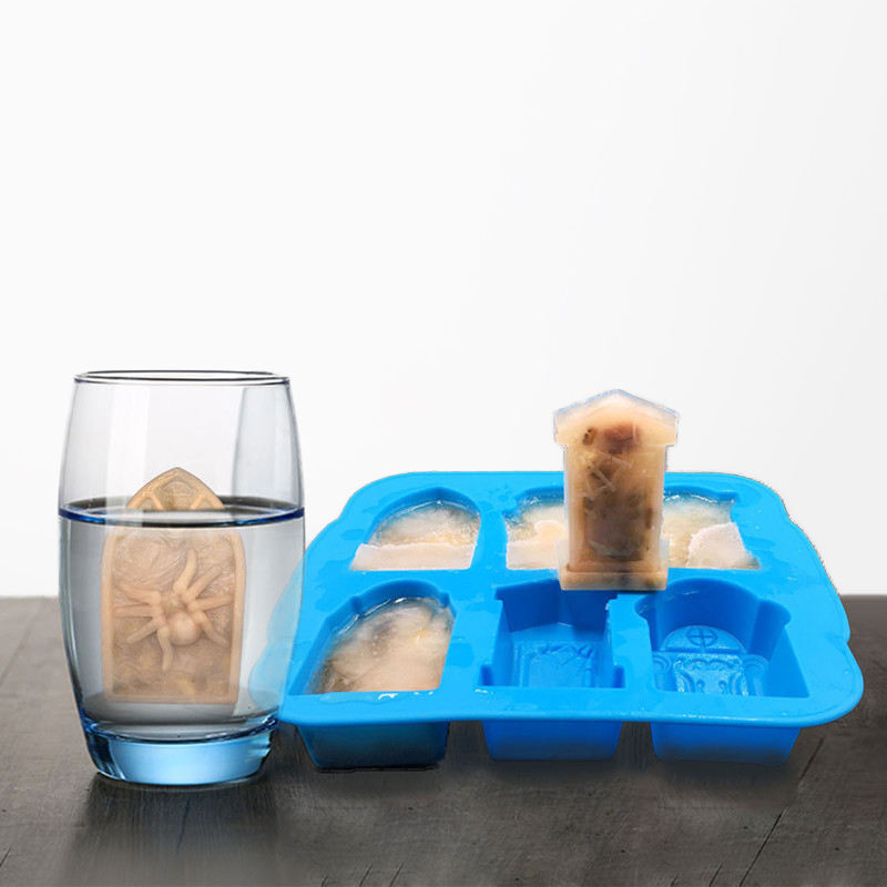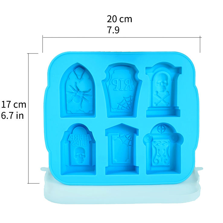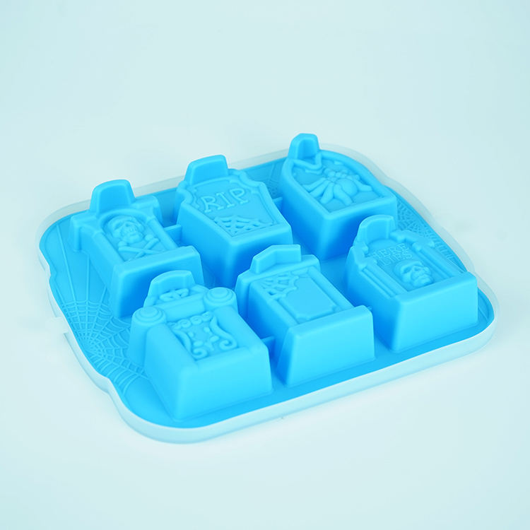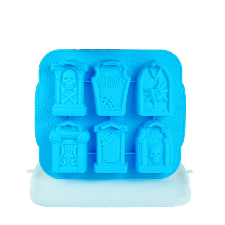 6 Cavities Halloween Tombstone Silicone Large Ice Cream Tub with Lid Homemade for Chocolate Food Grade