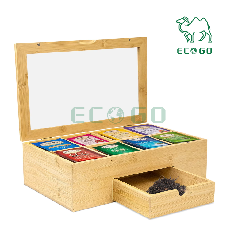 ถุงชาไม้ไผ่ธรรมชาติ6ช่องที่ใส่ชาพร้อมลิ้นชัก