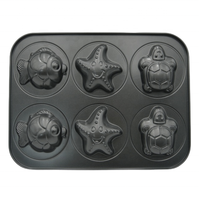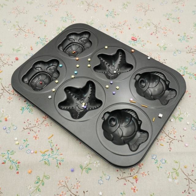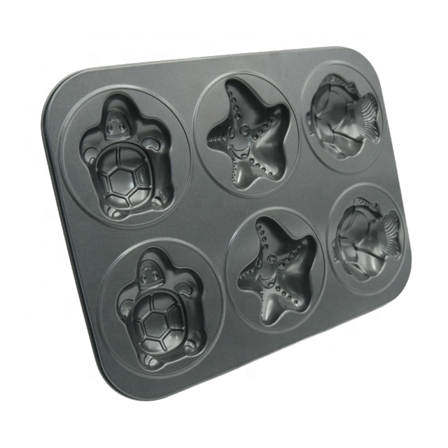 กระทะมัฟฟินเหล็กกล้าคาร์บอนแบบไม่ติด6ถ้วยรูปทรงมหาสมุทรพร้อมประสิทธิภาพการเปิดตัวที่ดีเครื่องมืออบที่บ้าน