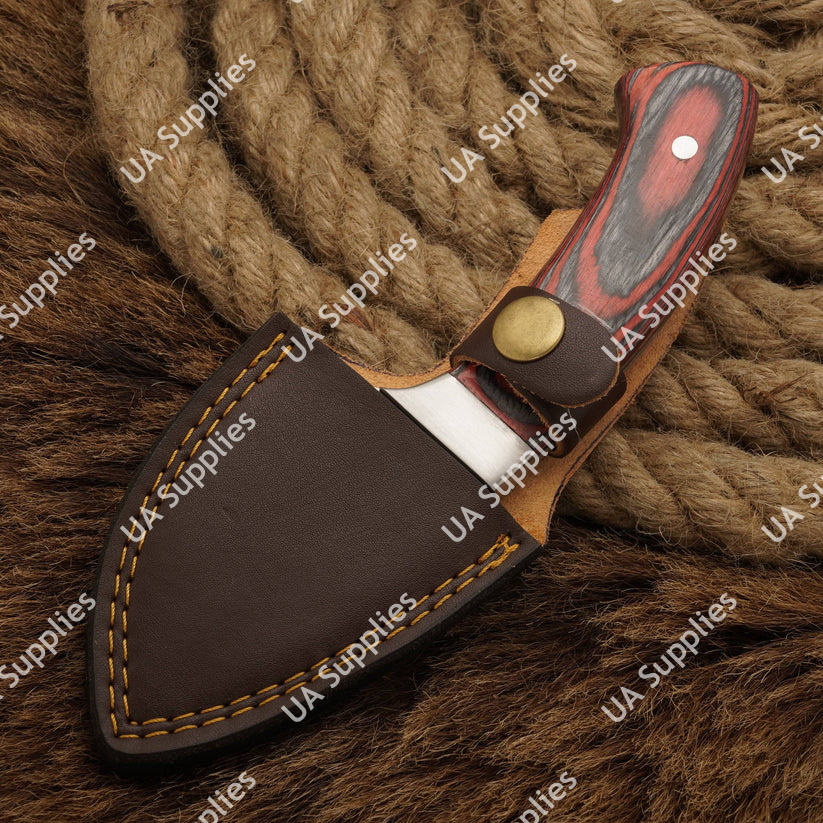 มีดอเนกประสงค์ EDC ขนาด 6 นิ้ว เหล็กดามัสกัสคุณภาพสูง สำหรับตั้งแคมป์ ใช้ในชีวิตประจำวัน ด้ามไม้ปักก้า ปลายใบมีดแบบ Drop Point ใบมีดคงที่