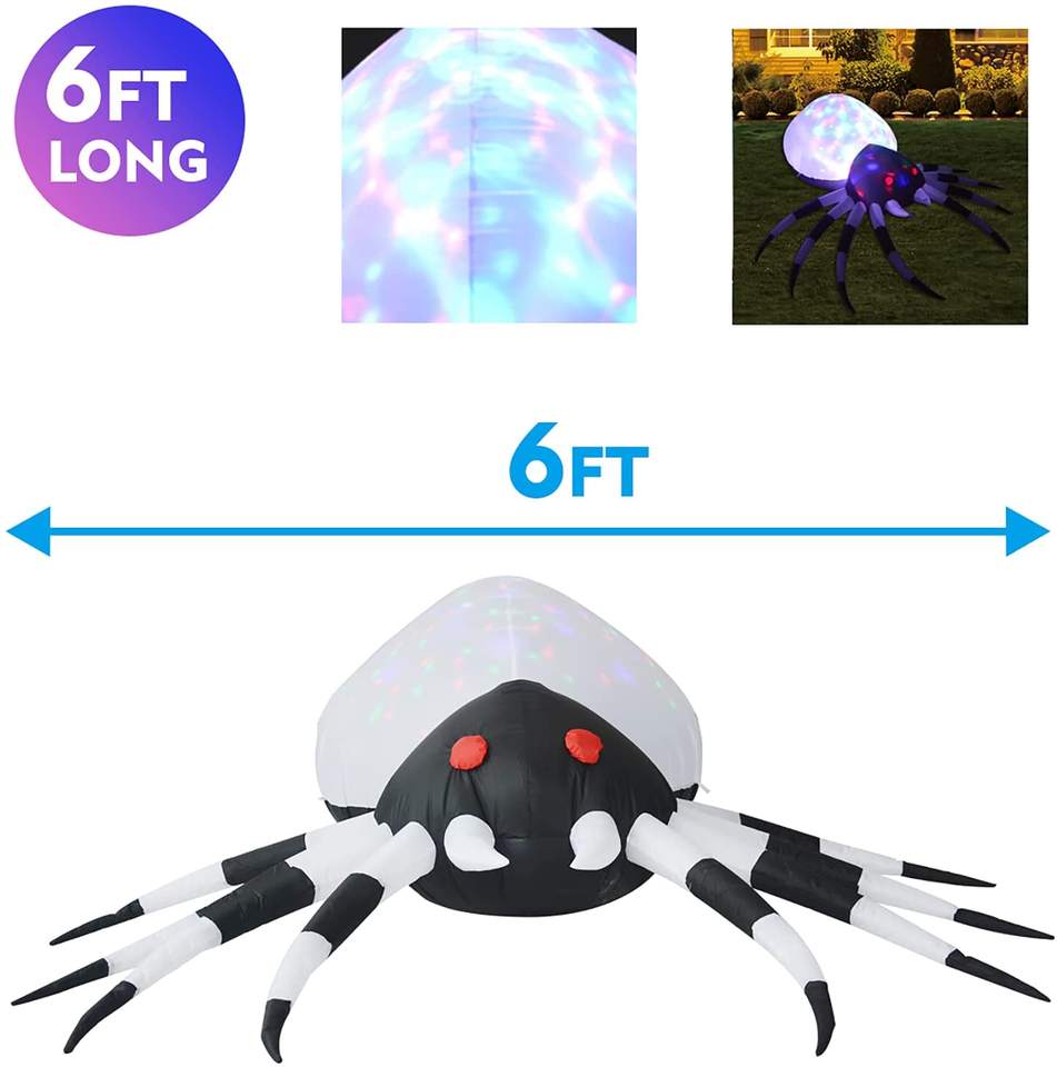 แมงมุมกลางแจ้งเป่าลมฮาโลวีนความยาว6ฟุตพร้อมไฟวิเศษสำหรับปาร์ตี้วันหยุดในสวน