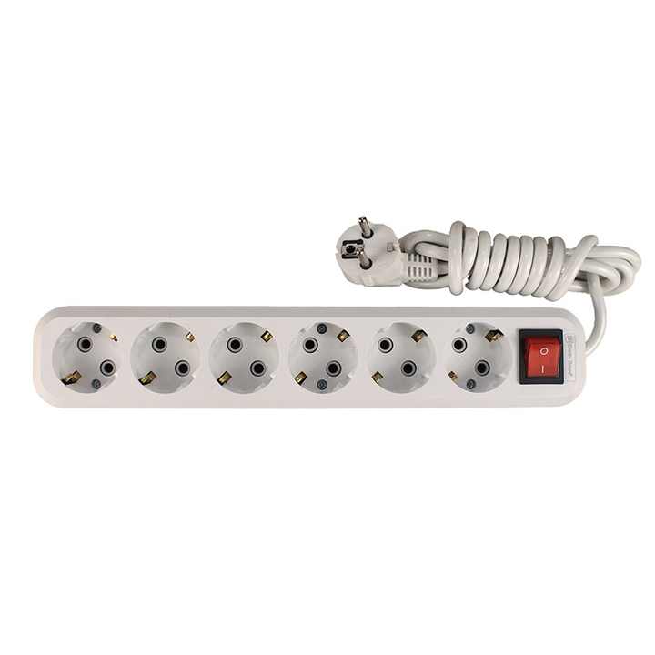6 Gang White Extension Socket With Grounding With Button 5 Meters Cable Electrical Power Strip ABS Plastic UK US EU Standard