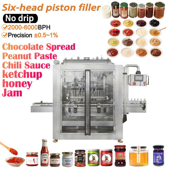 เครื่องบรรจุแบบลูกสูบเซอร์โว 6 หัว, เครื่องบรรจุอัตโนมัติความแม่นยำสูงสำหรับซอส ครีมเครื่องสำอาง และของเหลวข้นหนืด