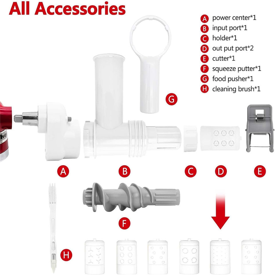 เครื่องทำพาสต้า6-in-1สำหรับเครื่องครัวเครื่องผสมอาหารอุปกรณ์เสริมสำหรับช่วยวางพาสต้าเครื่องผสมสปาเก็ตตี้ bucatini rigatoni fusilli
