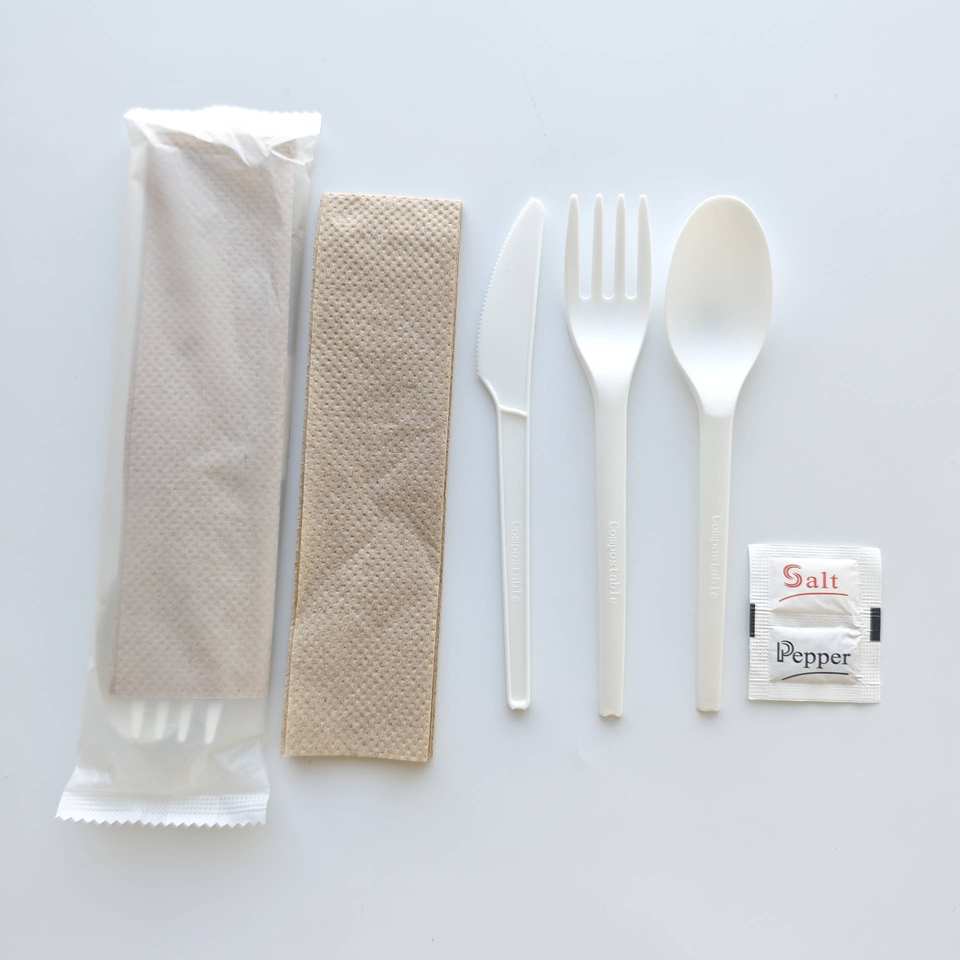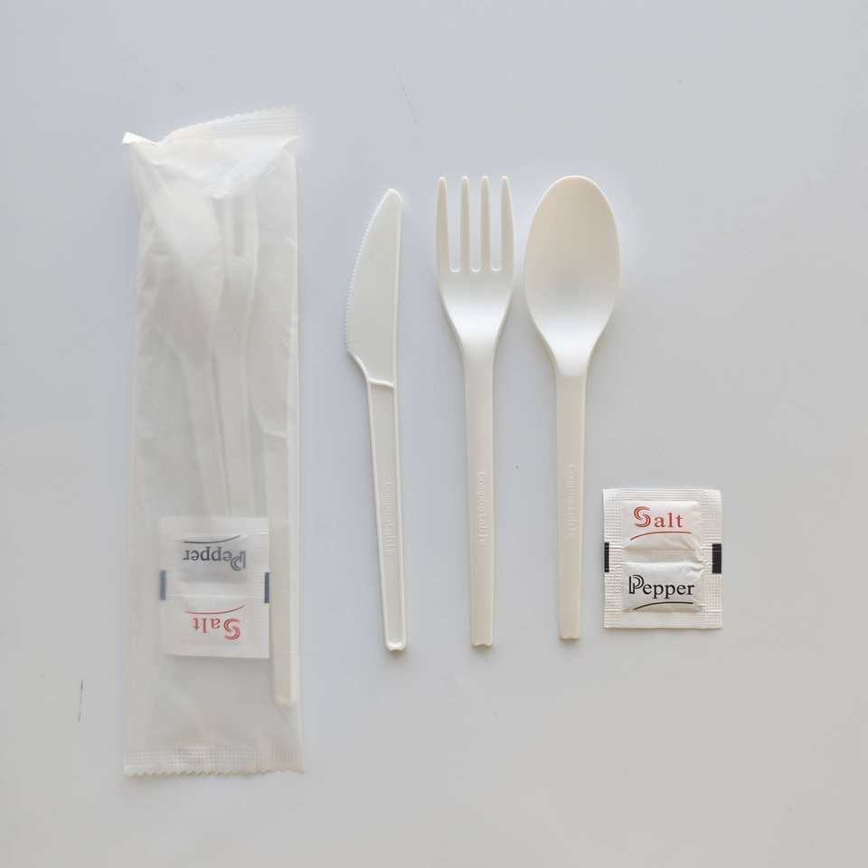 ชุดช้อนส้อม cpla 6นิ้วพร้อมเกลือและ pepperbpi ABAP อุปกรณ์ใช้แล้วทิ้งแบบย่อยสลายได้