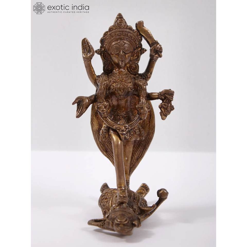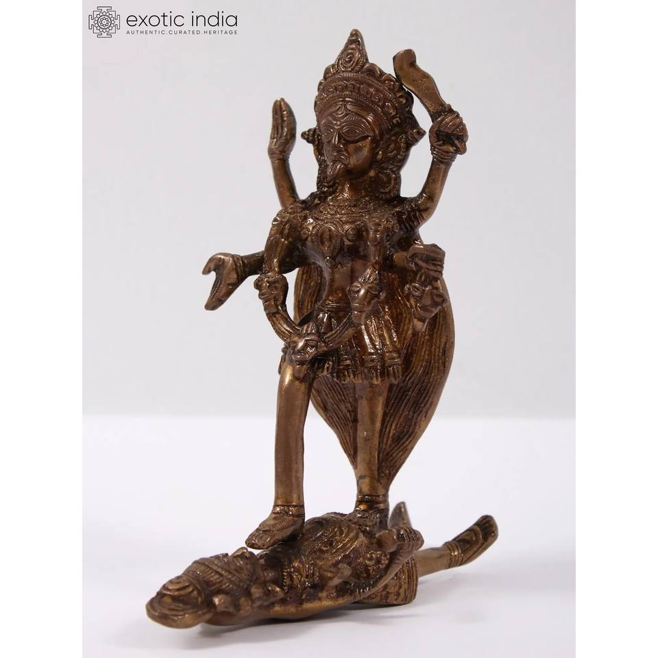 รูปปั้นทองเหลืองทำด้วยมือขนาด6นิ้วรูปปั้นเทพธิดาคาลีพร้อมรูปปั้นทองเหลืองแบบชนเผ่าสำหรับบ้านและวิหารผลิตในอินเดีย