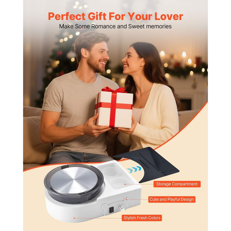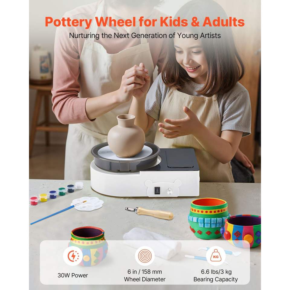 6-Inch White Mini Electric Clay Wheel Model D0100X32FX2 for Kids and Adults Pottery Wheel Turning Tool