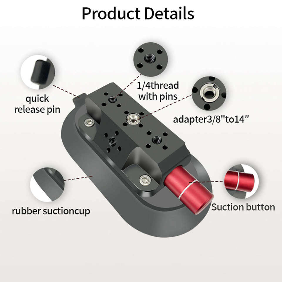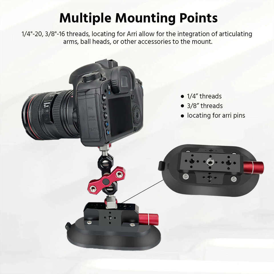ขายึดกระจกหน้ารถขนาด 6 นิ้วพร้อมอะแดปเตอร์อลูมิเนียมอัลลอยด์แบบถ้วยดูดพร้อมรู ARRI สำหรับกล้องที่ใช้งานร่วมกันได้กับโกโปร ฮีโร่ 13/ดีไอ โอสโม
