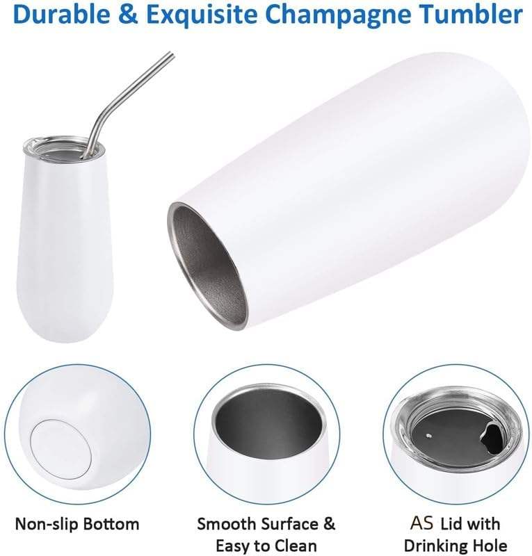 แก้วแชมเปญสแตนเลสขนาด 6 ออนซ์ ไม่มีก้าน พร้อมฝาปิด แก้วเก็บความร้อนสองชั้น สำหรับเดินทาง ใส่ไวน์ กาแฟ