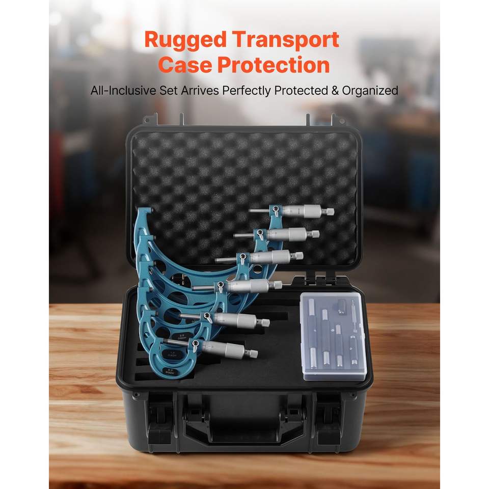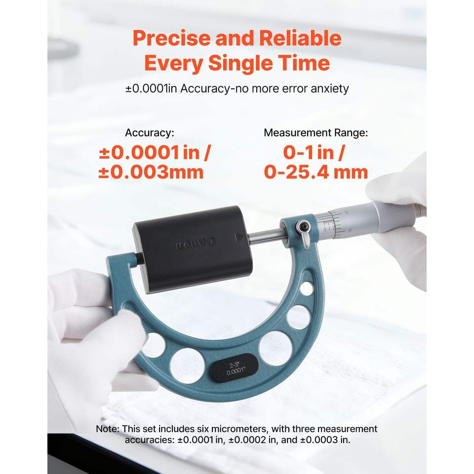 ชุดไมโครมิเตอร์ช่างกล 6 ชิ้น 0-1"/1-2"/2-3"/3-4"/4-5"/5-6" ระดับมืออาชีพ ความแม่นยำ 0.0001 สำหรับงานช่างมืออาชีพ