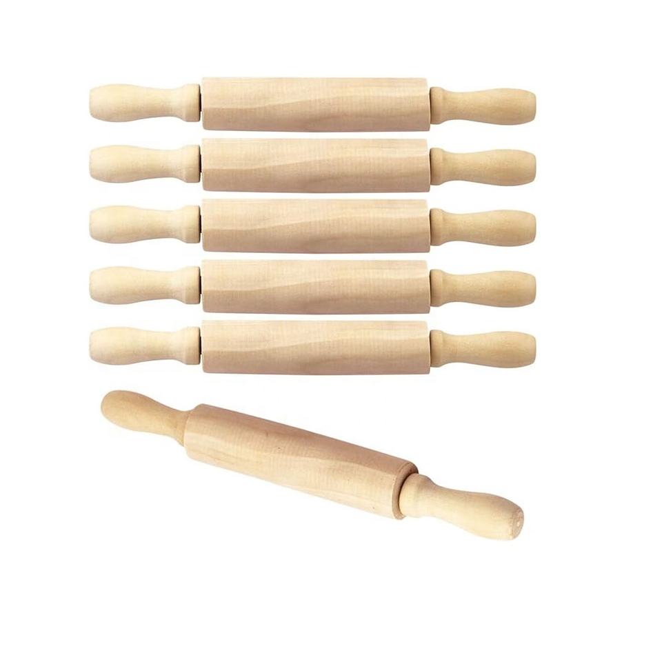 หมุดกลิ้งไม้ขนาดเล็ก8นิ้ว6แพ็คสำหรับเด็กศิลปะงานหัตถกรรมอบแป้งคุกกี้สำหรับการเล่น Doh เหมาะสำหรับกระดานขนมและดินเหนียว
