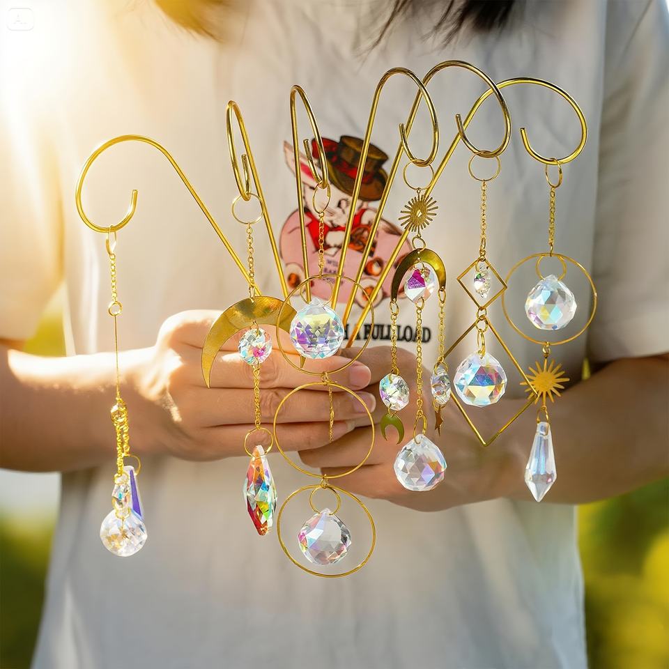ชุดเสาค้ำต้นไม้ขนาดเล็ก 6 ชิ้น ทำจากวัสดุ EVA พร้อมคริสตัลหลากสีสันสำหรับดักแสงแดด - เสาค้ำขนาด 8 นิ้ว สำหรับปลูกต้นไม้ในร่ม/กลางแจ้ง